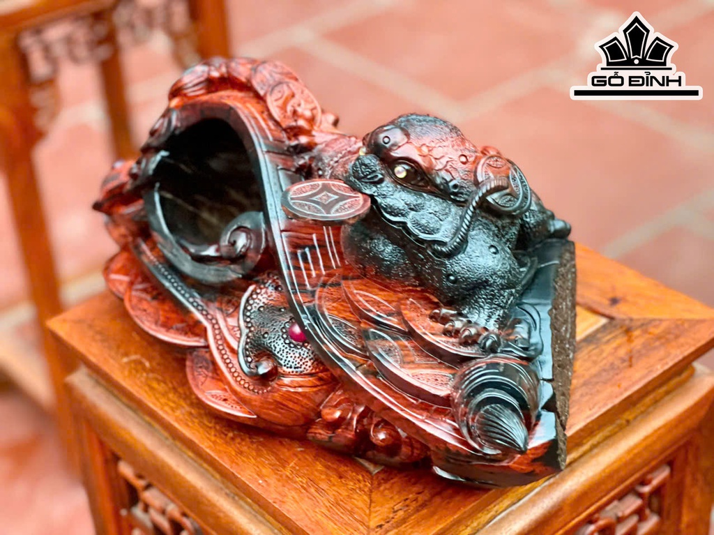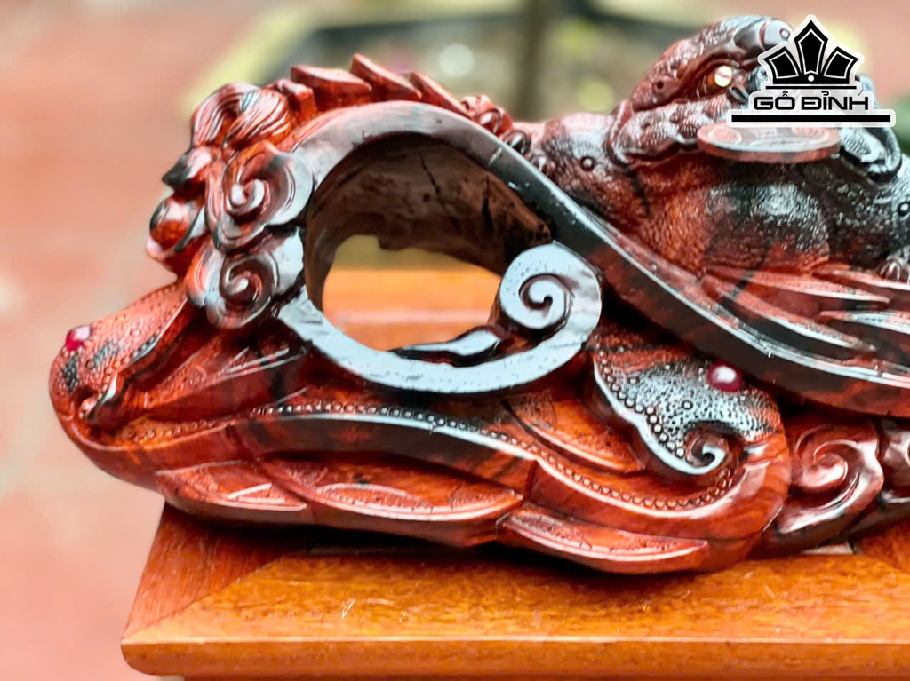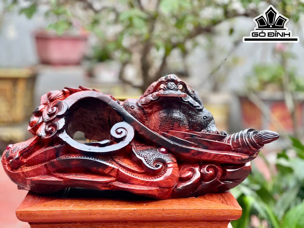 Tượng Thiềm Thừ Gỗ Trắc Cao 14 Ngang 40 Sâu 22 (cm)