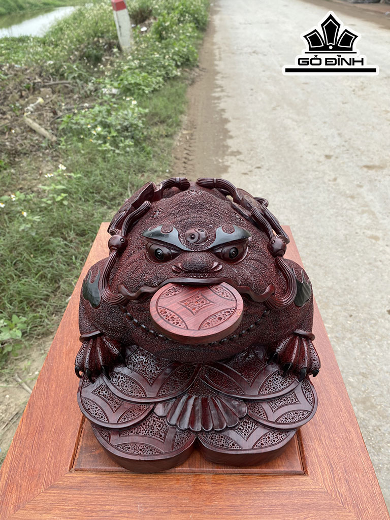 Tượng Thiềm Thừ Gỗ Tử Đàn Cao 23 Ngang 28 Dài 45 (cm)