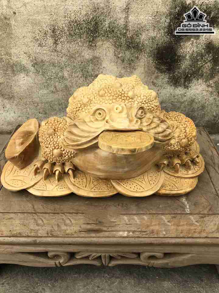 Tượng Thiềm Thừ Ngậm Tiền Gỗ Nu Nghiến Cao 19 Rộng 39 Dày 26 (cm)
