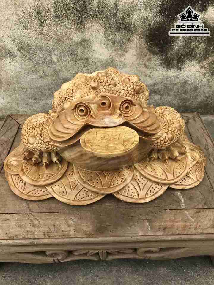 Tượng Thiềm Thừ Ngậm Tiền Gỗ Nu Nghiến Cao 19 Rộng 40 Dày 27 (cm)