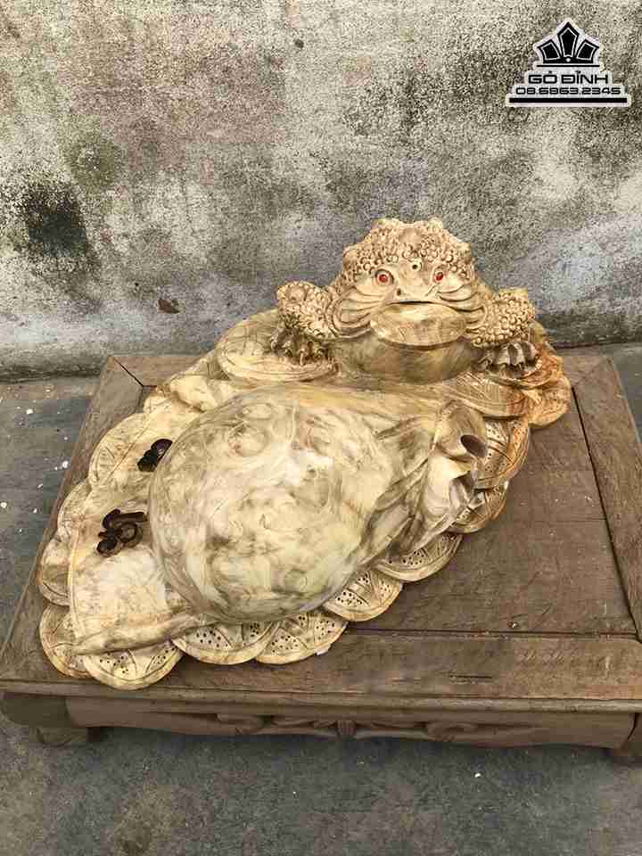 Tượng Thiềm Thừ Ngậm Tiền Gỗ Nu Nghiến Cao 18 Ngang 48 Sâu 26 (cm)
