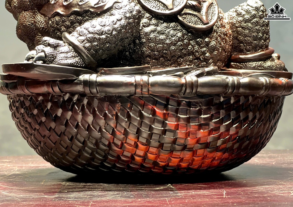 Tượng Thiềm Thừ Ngồi Thúng Gỗ Trắc Cao 24 Ngang 27 Sâu 30 (cm)