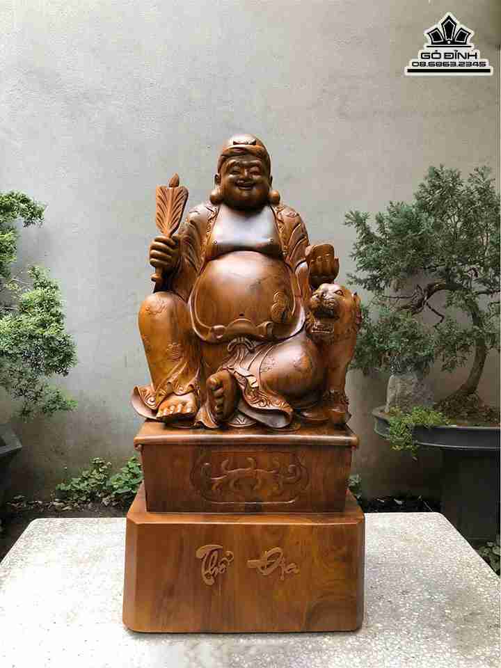 Tượng Thổ Địa Gỗ Bách Xanh Cao 104 Ngang 50 Sâu 36 (cm)