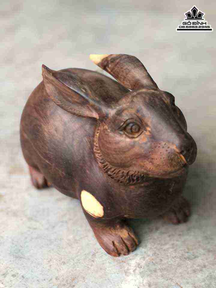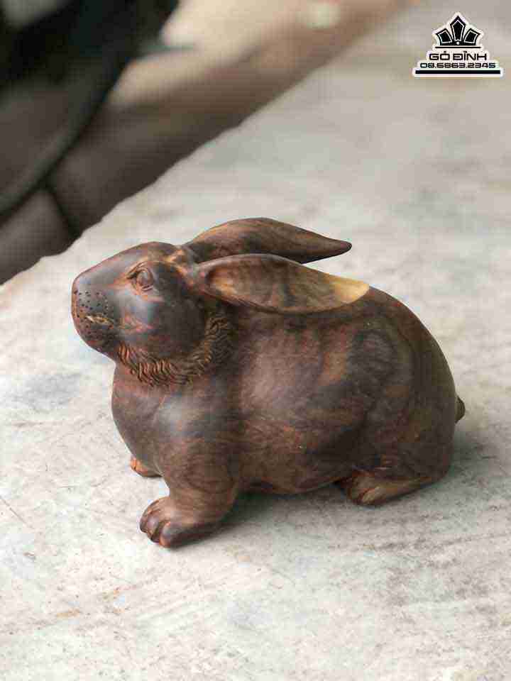 Tượng Thỏ Ngọc Gỗ Trắc Việt Cao 12 Ngang 18 Sâu 10 (cm)