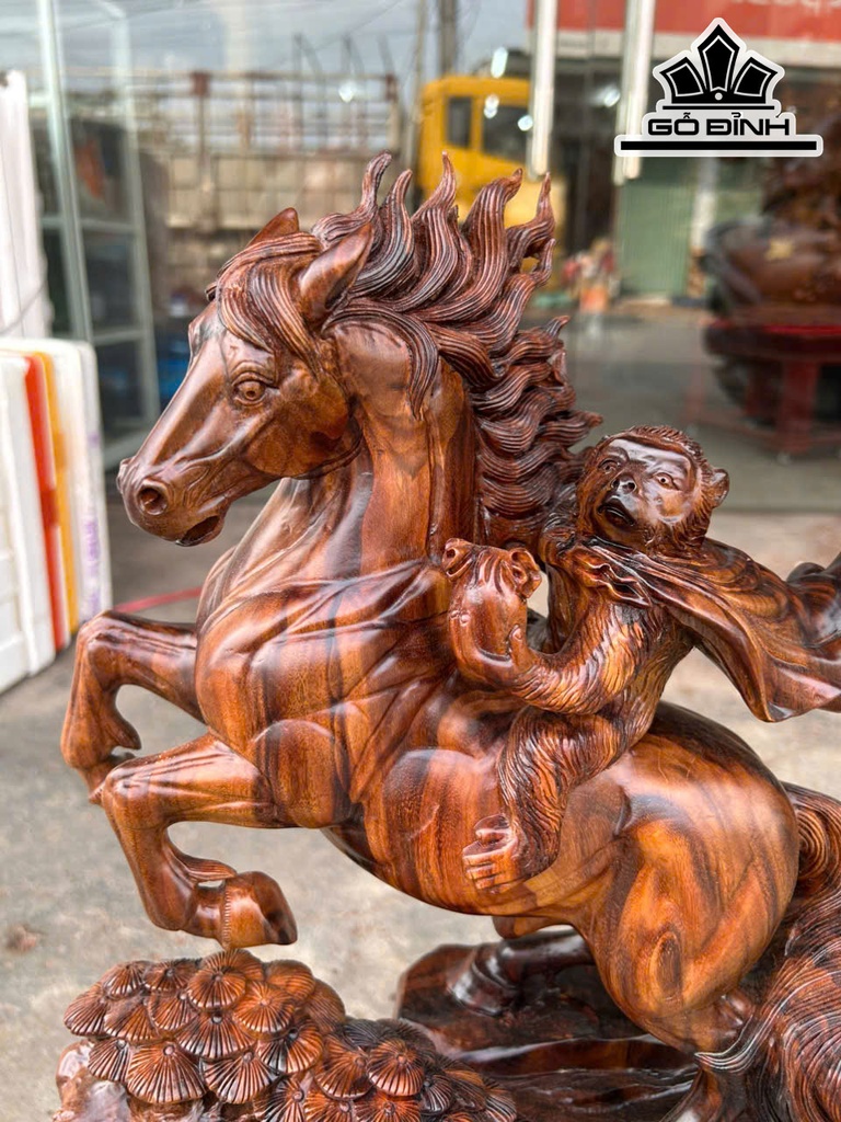Tượng Thượng Mã Phong Hầu Gỗ Mun Cao 60 Ngang 32 Sâu 16 (cm)