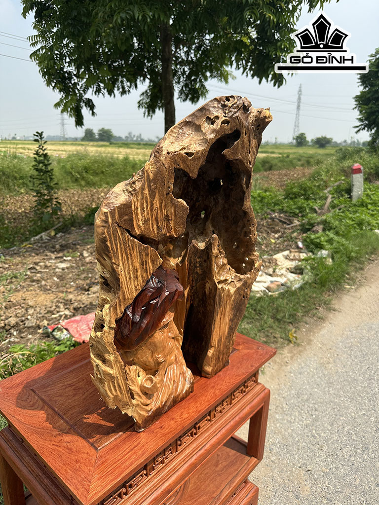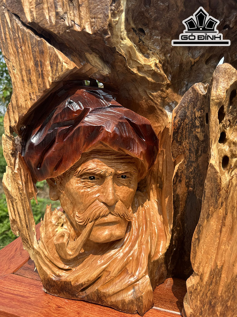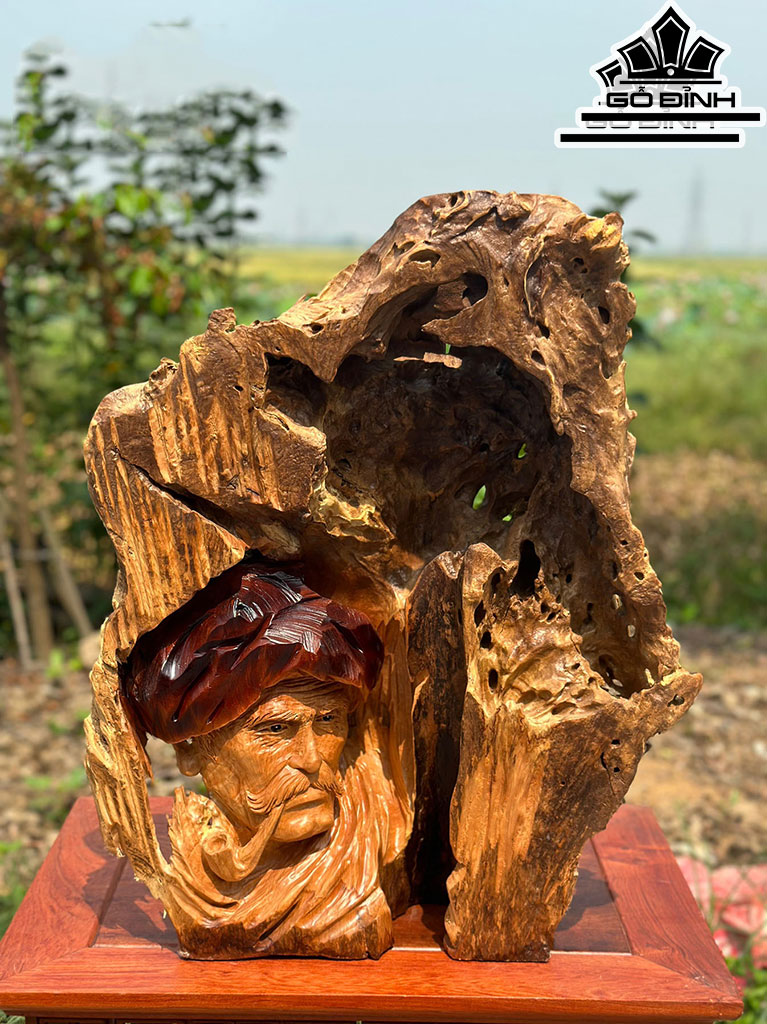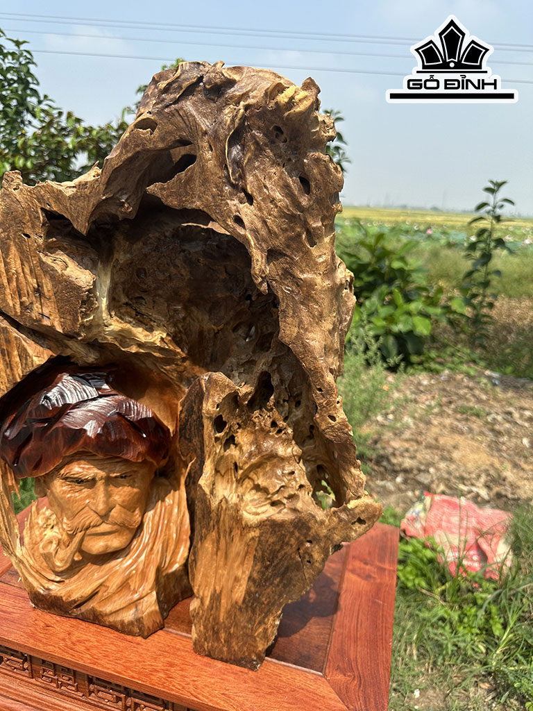 Tượng Thương Nhân Tây Vực Gỗ Dổi Cao 61 Ngang 50 Sâu 21 (cm)