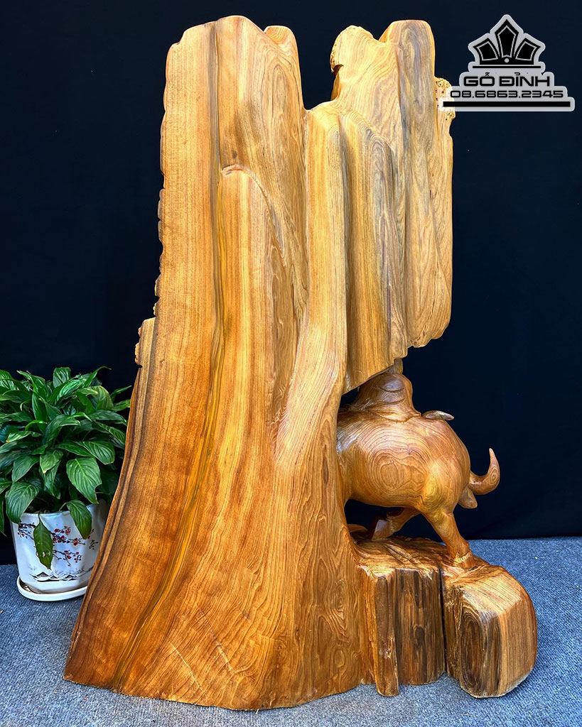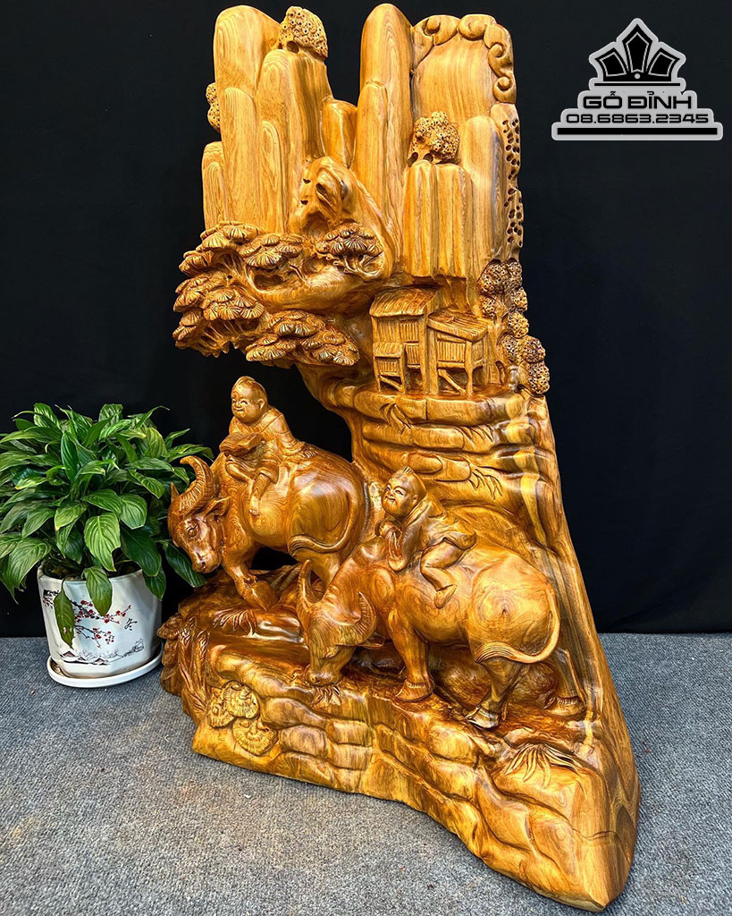 Tượng Tiểu Cảnh Chăn Trâu Gỗ Ngọc Am Cao 81 Ngang 63 Sâu 35 (cm)