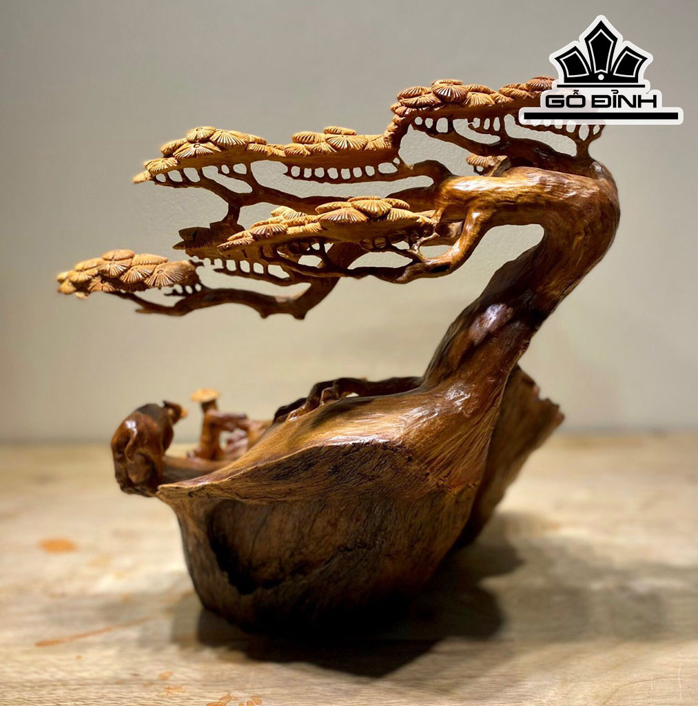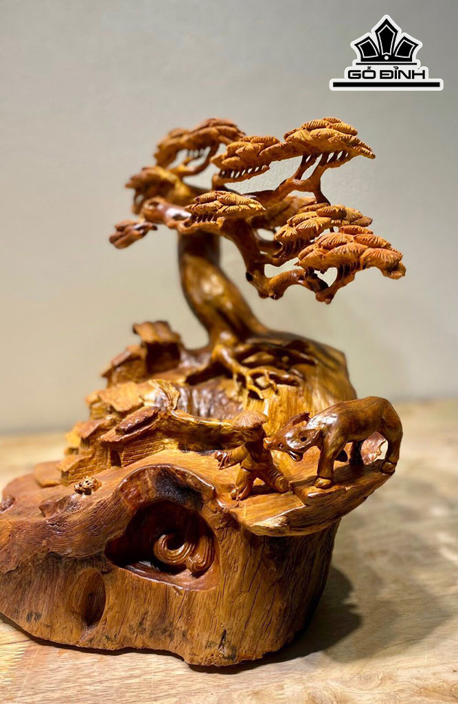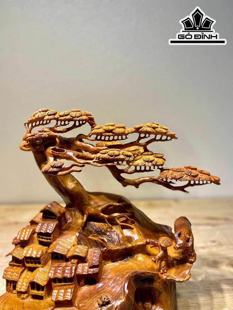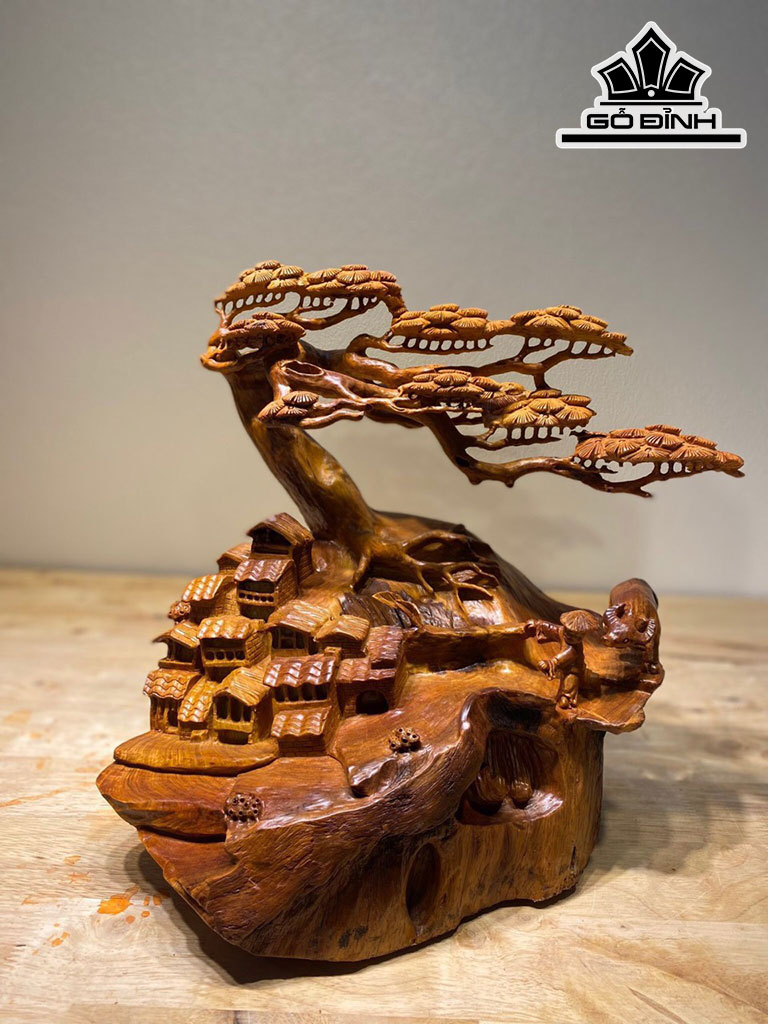 Tượng Tiểu Cảnh Gỗ Hương Cao 32 Ngang 35 Sâu 25 (cm)