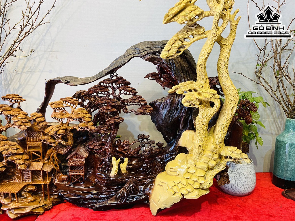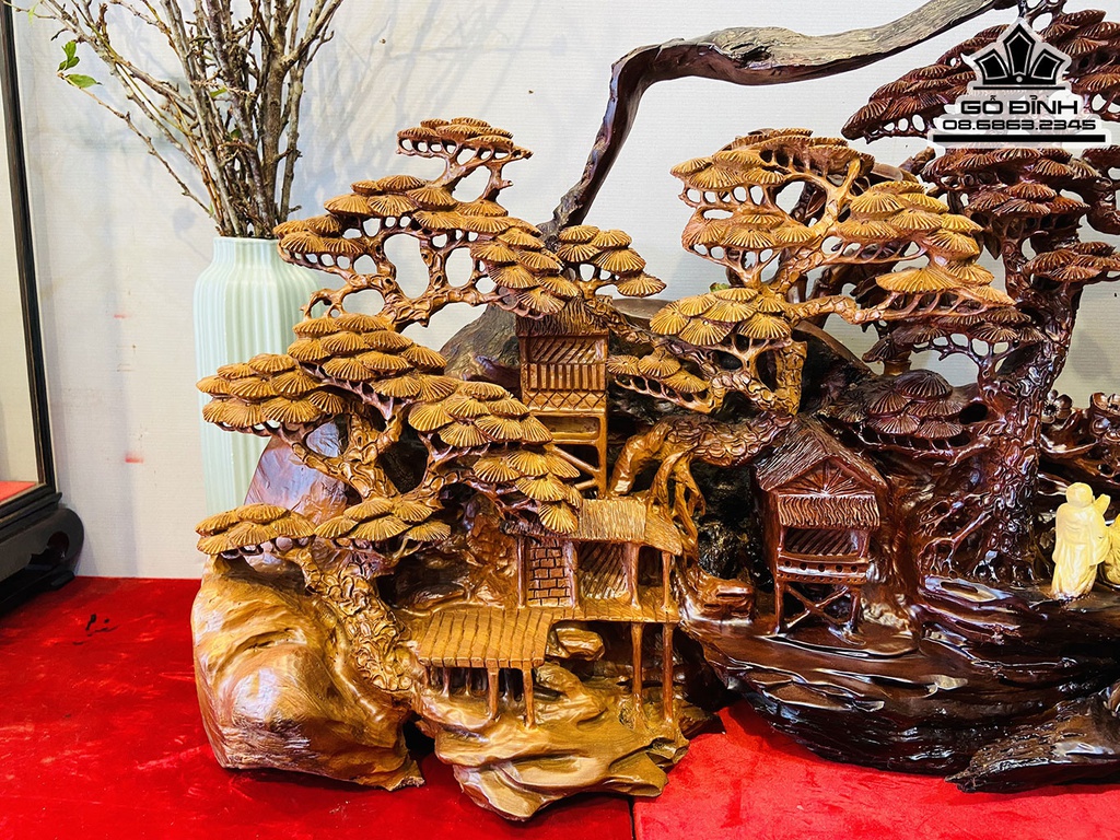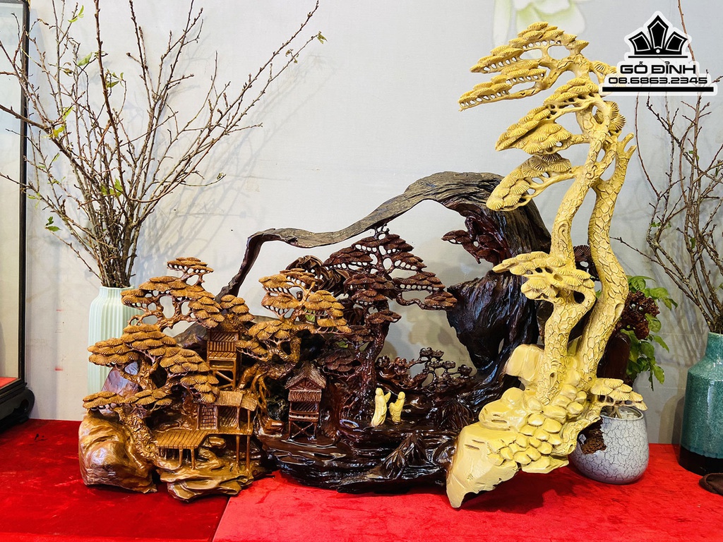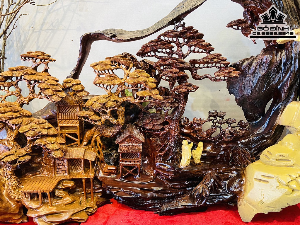 Tượng Tiểu Cảnh Gỗ Hương Cao 93 Ngang 110 Sâu 33 (cm)