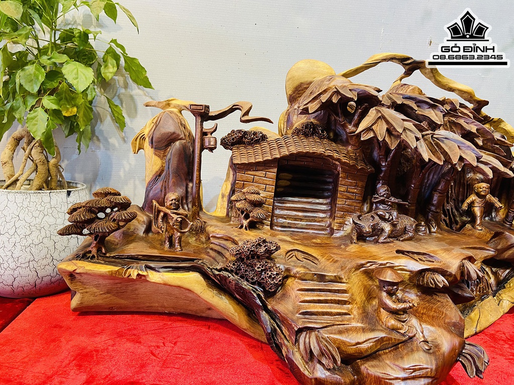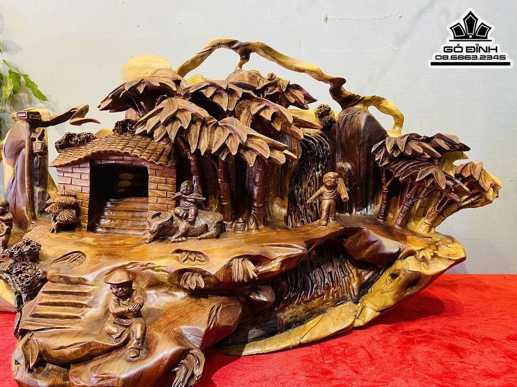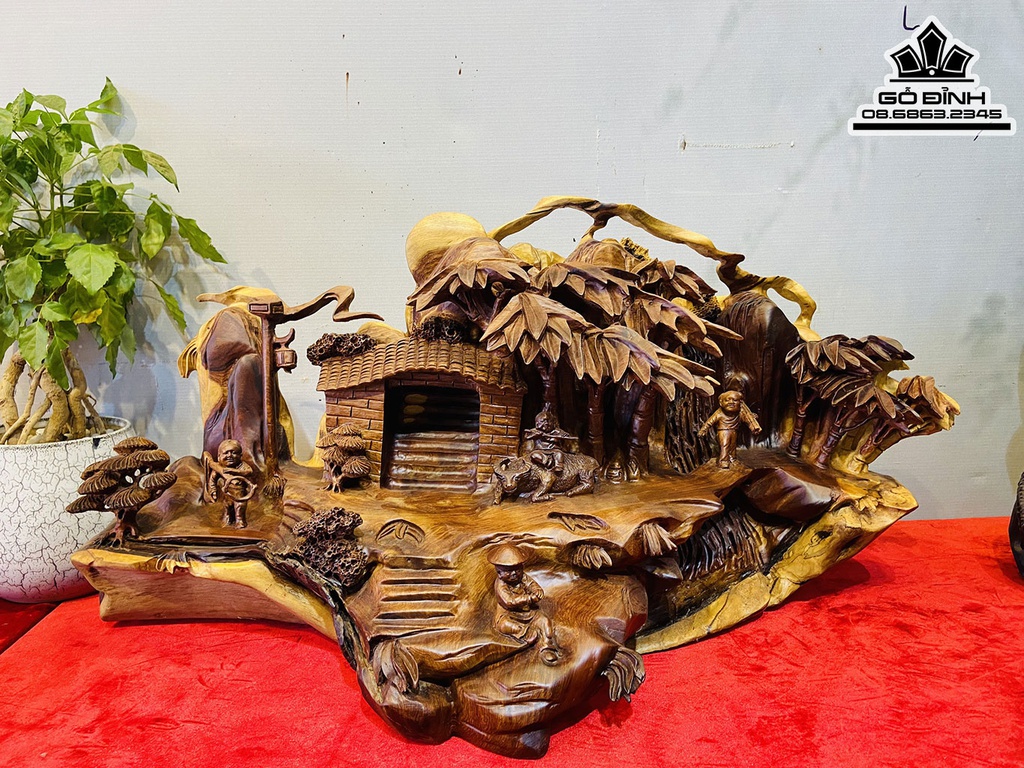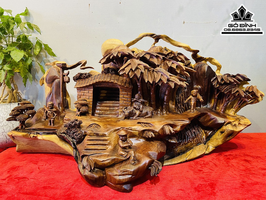 Tượng Tiểu Cảnh Gỗ Hương Việt Cao 38 Ngang 70 Sâu 28 (cm)