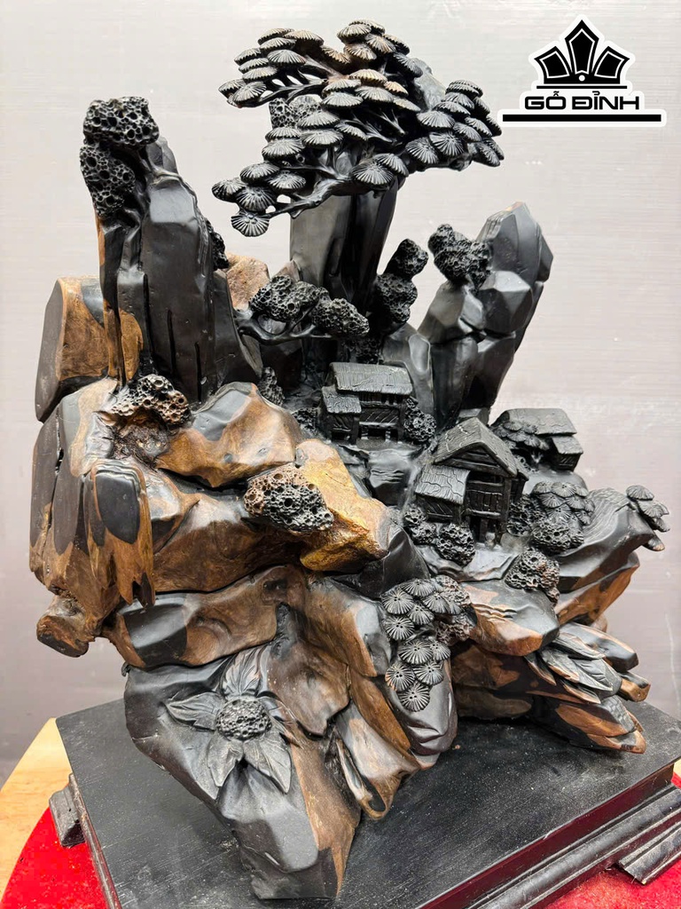 Tượng Tiểu Cảnh Gỗ Mun Sừng Cao Cả Kỷ 60 Ngang 48 Sâu 25 (cm) - Kỷ Cao 10 (cm)