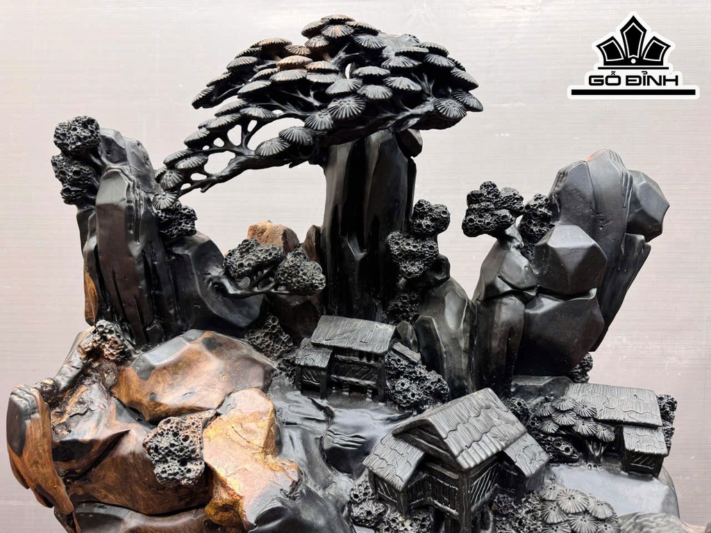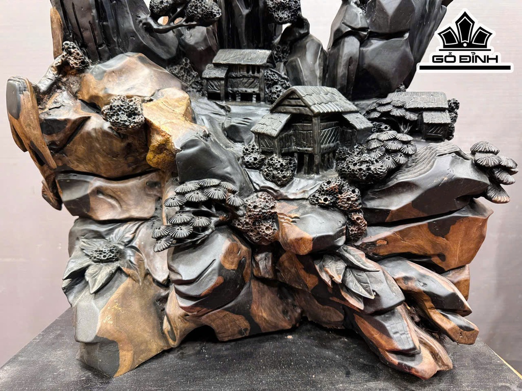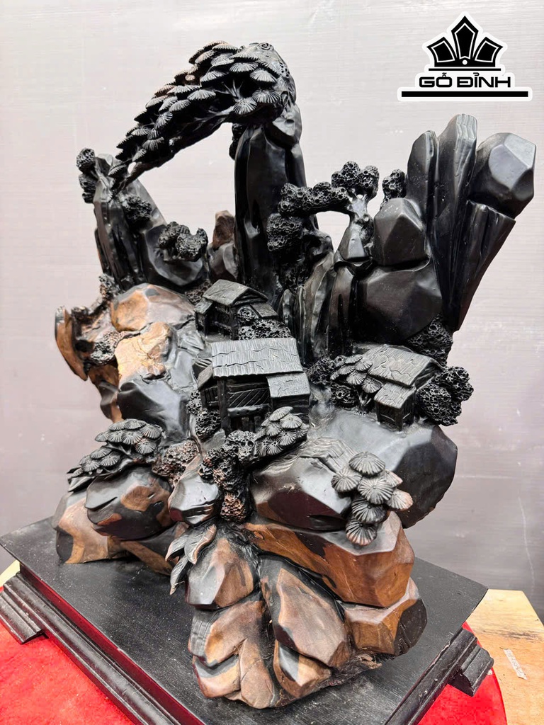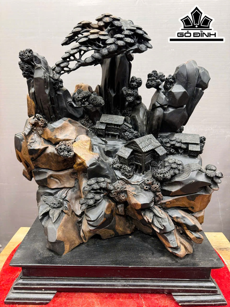 Tượng Tiểu Cảnh Gỗ Mun Sừng Cao Cả Kỷ 60 Ngang 48 Sâu 25 (cm) - Kỷ Cao 10 (cm)