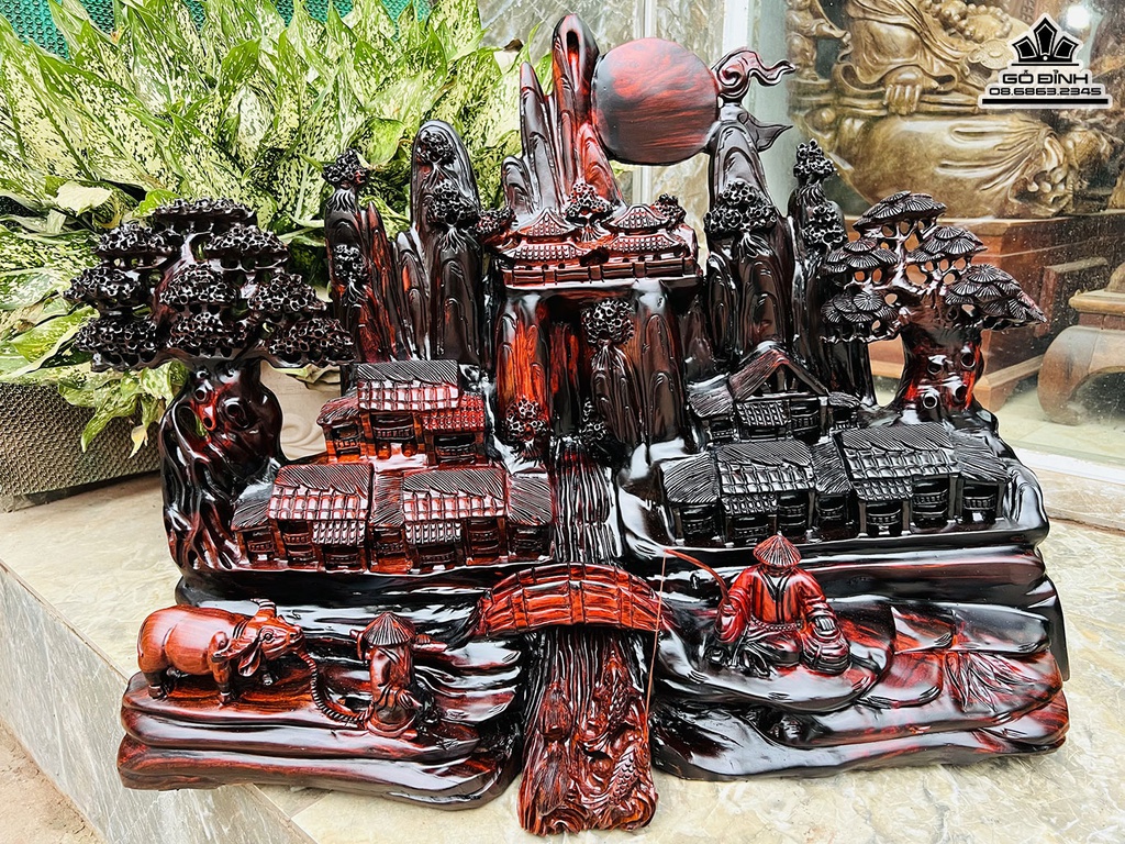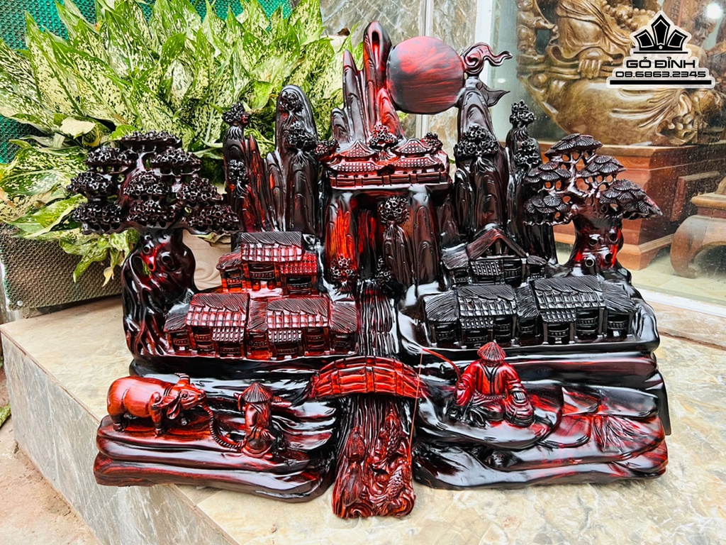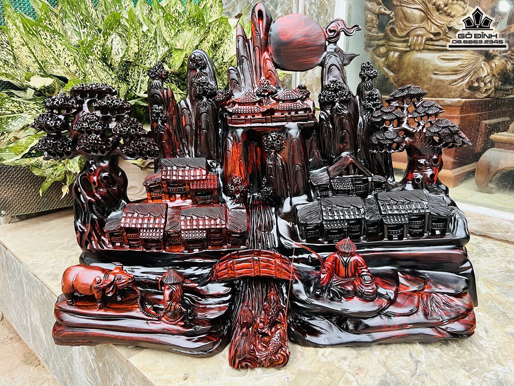 Tượng Tiểu Cảnh Gỗ Trắc Cao 51 Ngang 68 Sâu 30 (cm)