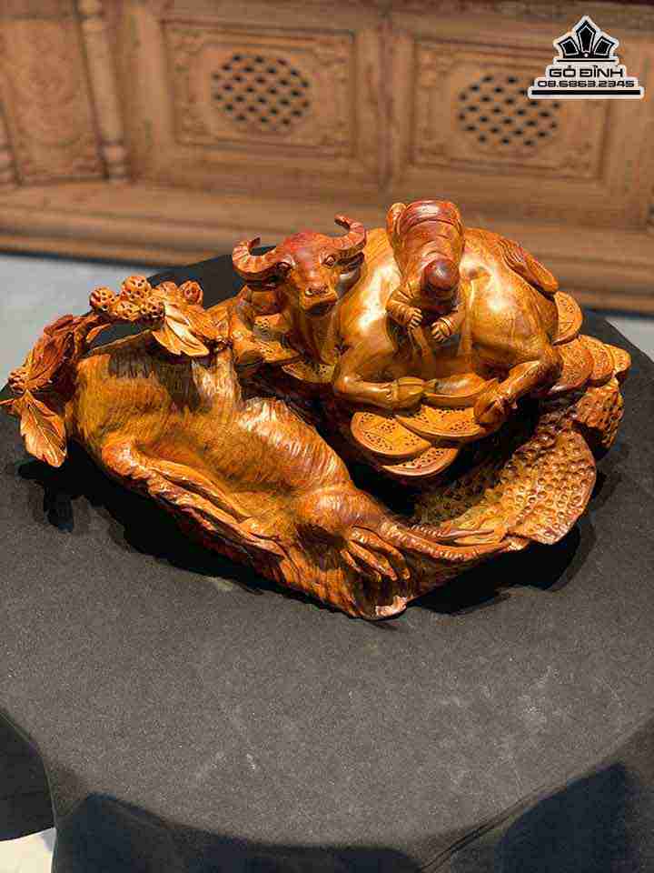 Tượng Tiểu Đồng Chăn Trâu Gỗ Hương Cao 24 Rộng 50 Dày 30 (cm)