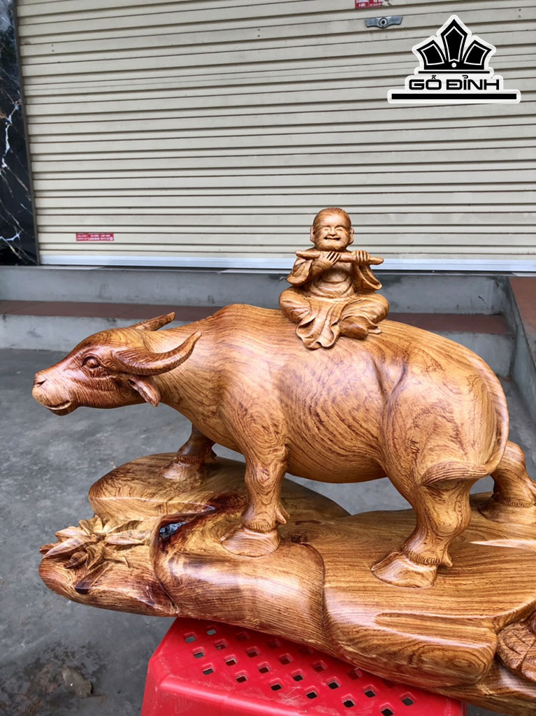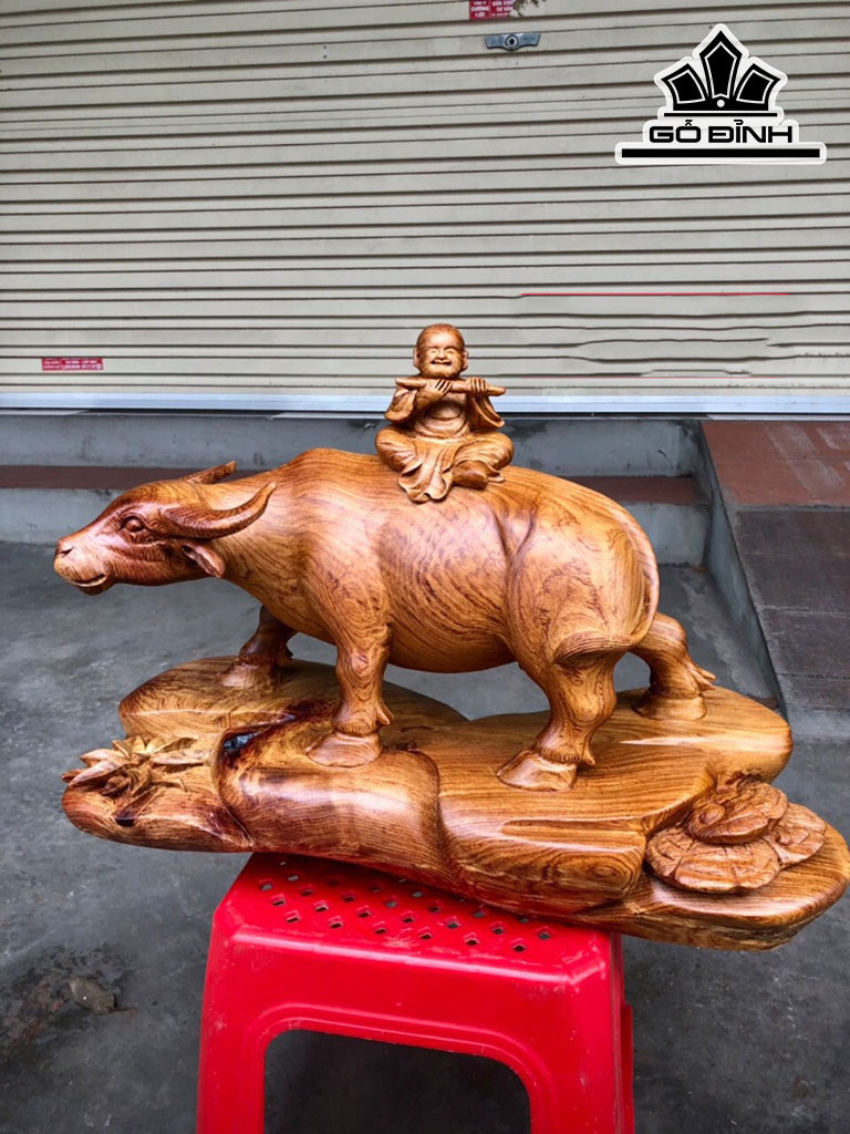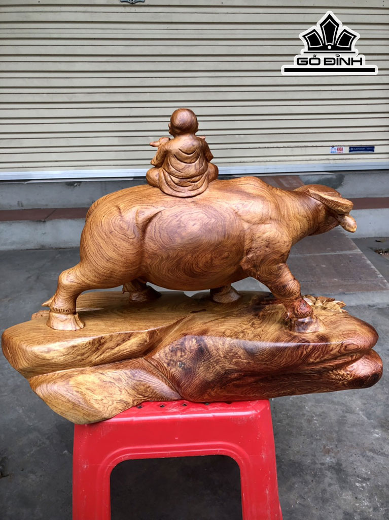 Tượng Tiểu Đồng Chăn Trâu Gỗ Hương Cao 34 Ngang 47 Sâu 20 (cm)