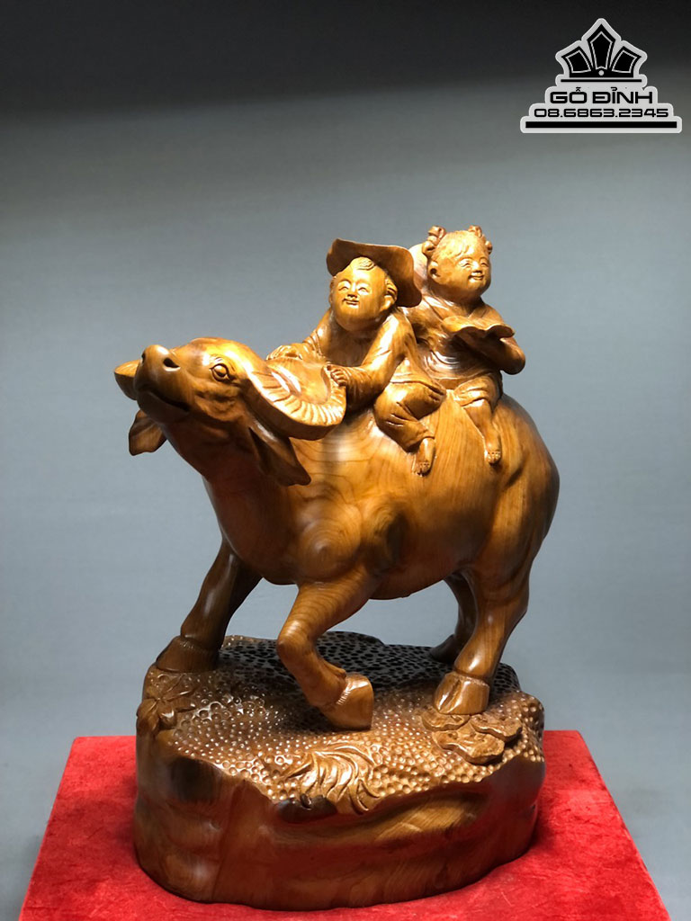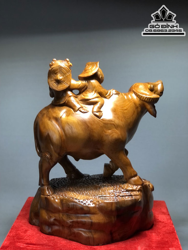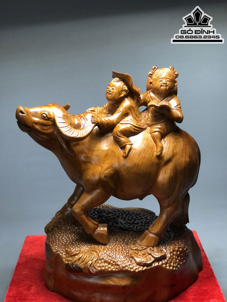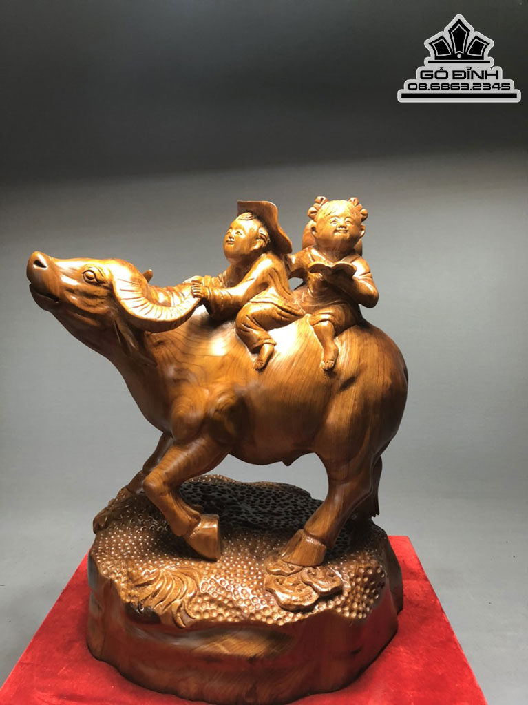 Tượng Tiểu Đông Chăn Trâu Gỗ Ngọc Am Liền Khối Cao 47 Ngang 36 Sâu 30 (cm)