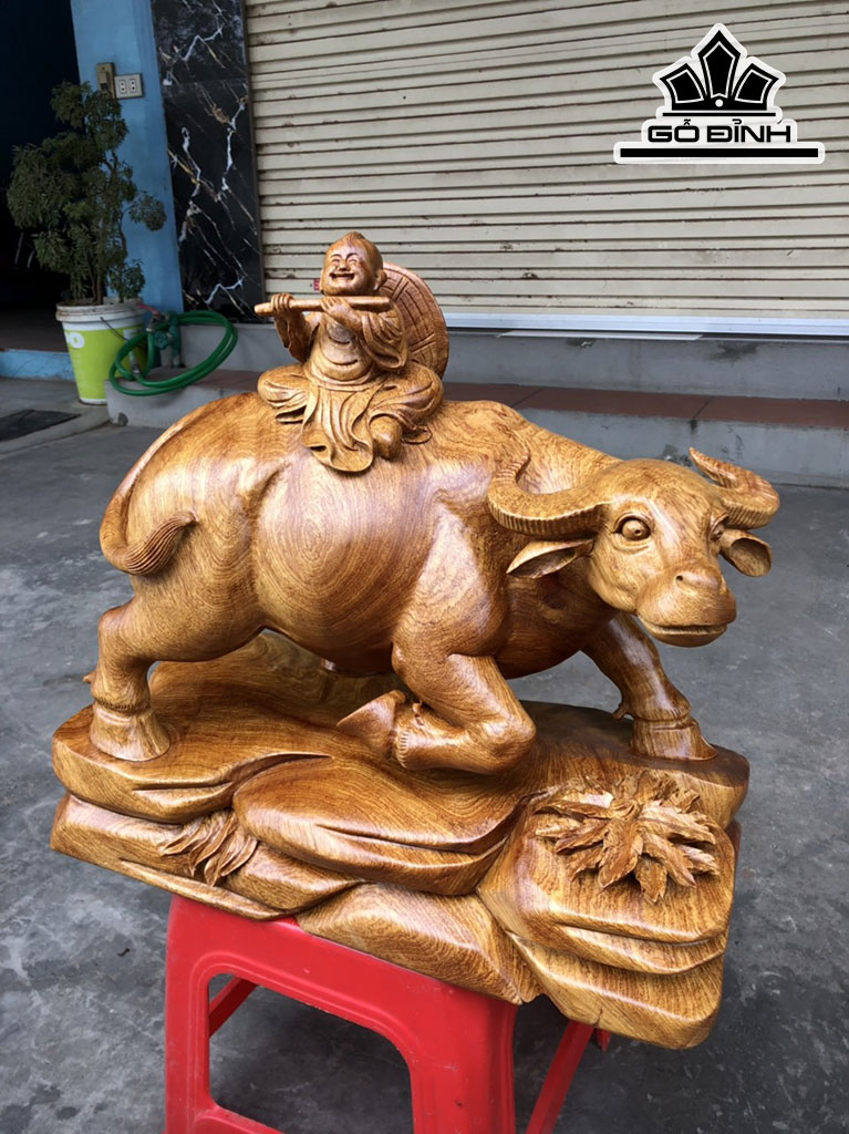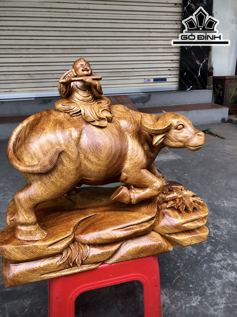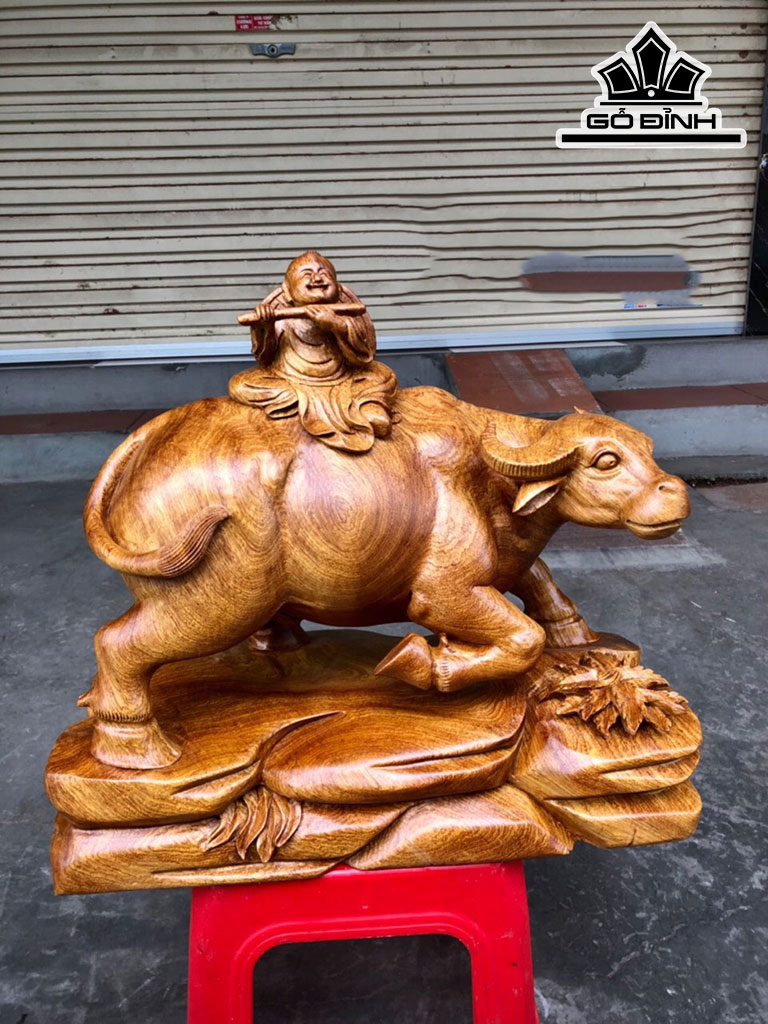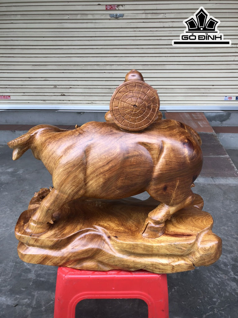 Tượng Tiểu Đồng Chăn Trâu Thổi Sáo Gỗ Hương Cao 41 Ngang 44 Sâu 23 (cm)