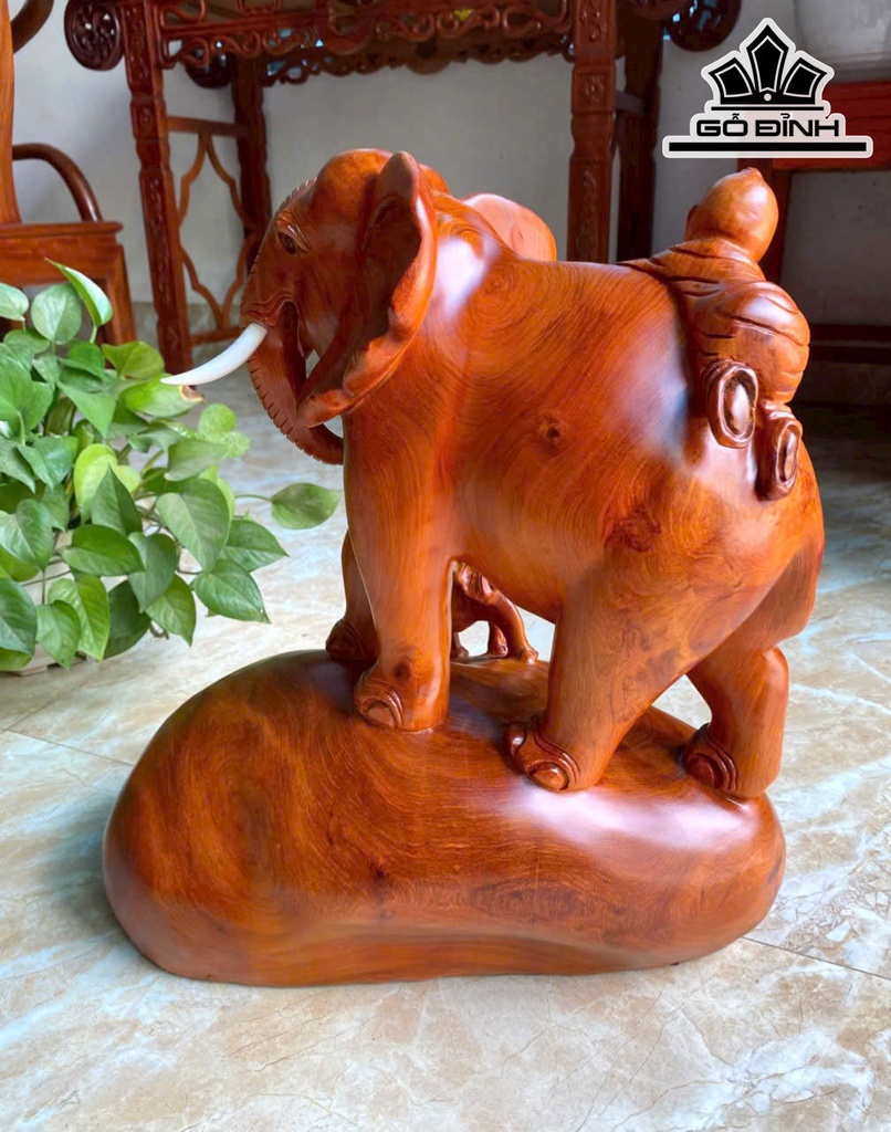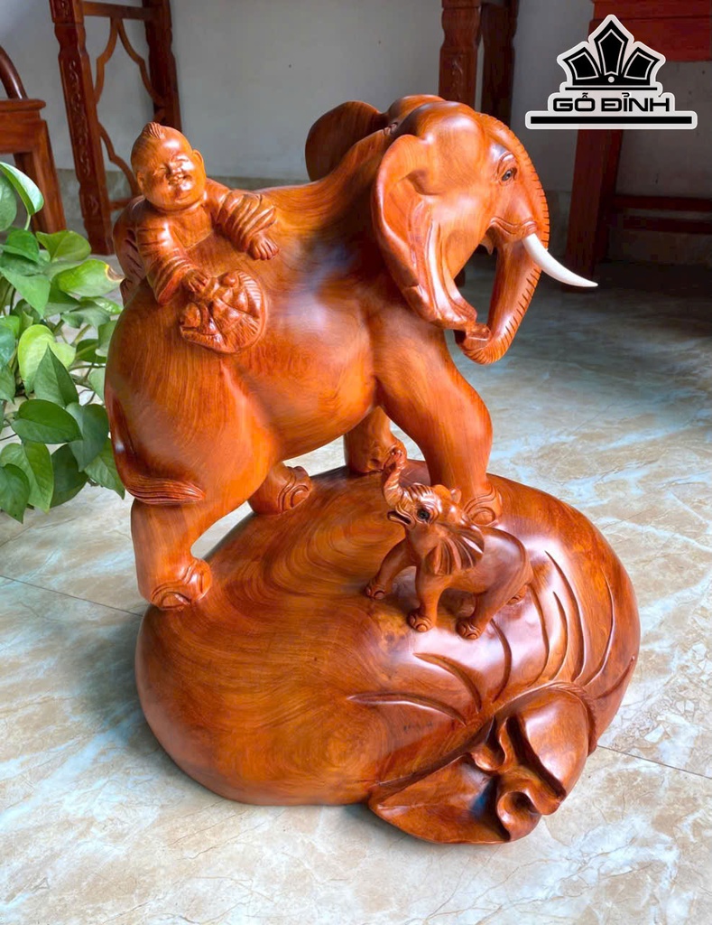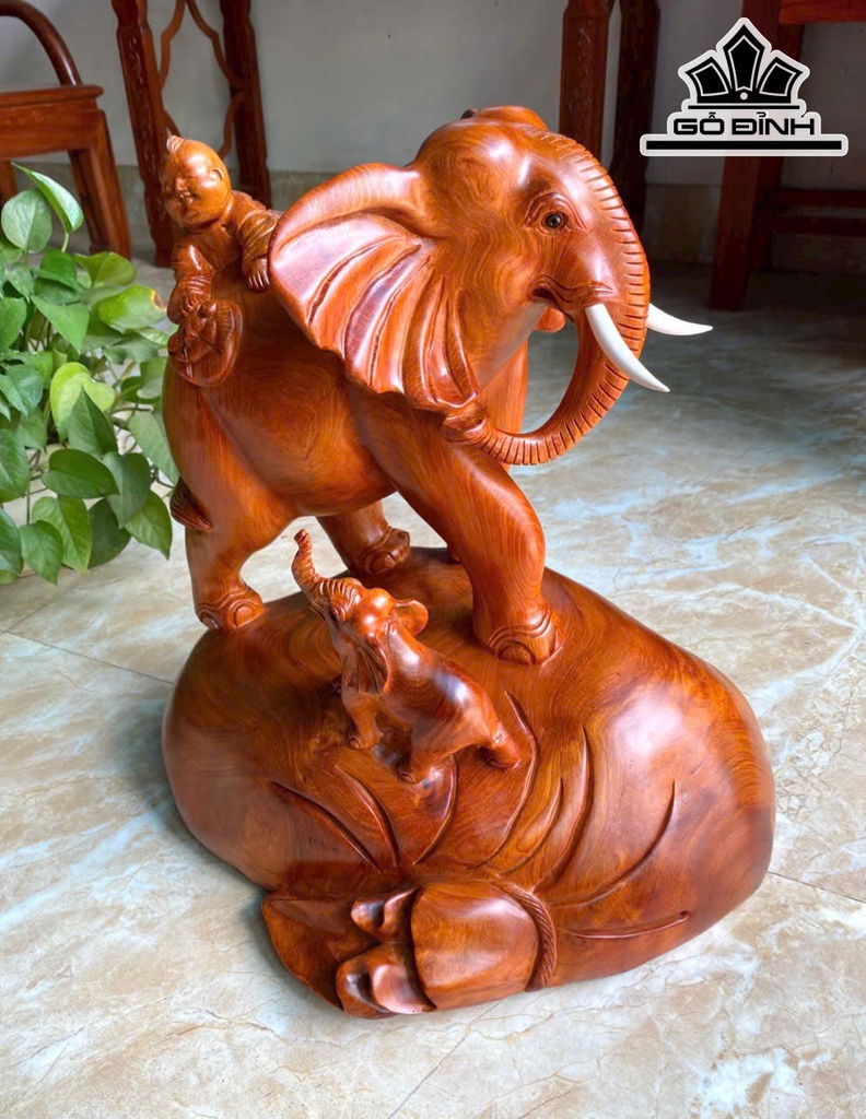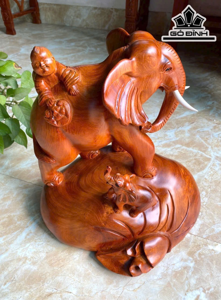 Tượng Tiểu Đồng Cưỡi Voi Gỗ Hương Cao 41 Ngang 38 Sâu 28 (cm)