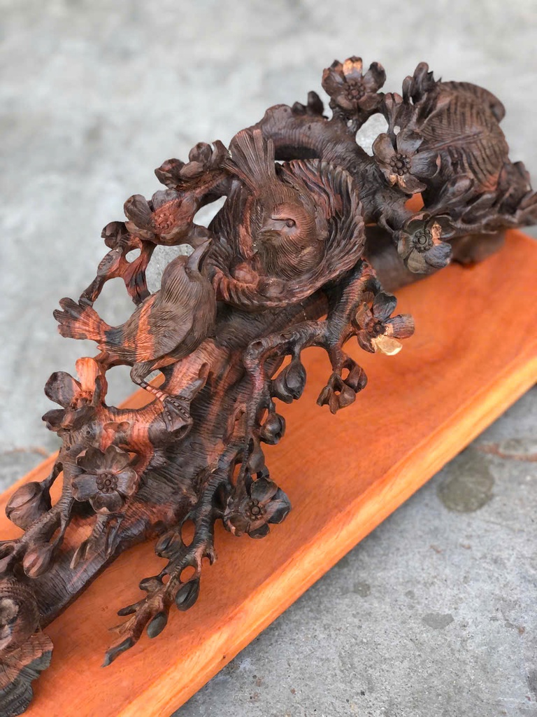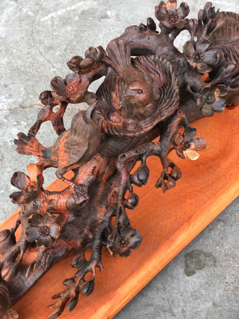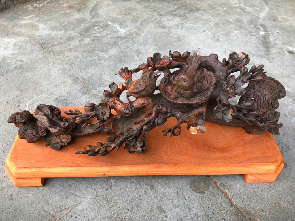 Tượng Tổ Chim Gỗ Trắc Cao 14 Ngang 50 Sâu 16 (cm) - Cả Kỷ Cao 18 (cm)