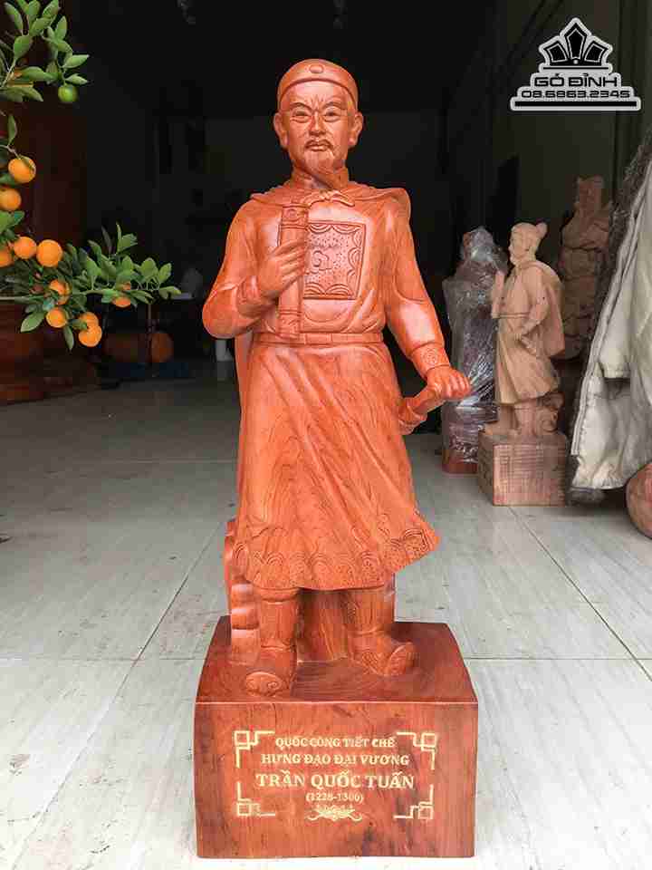 Tượng Trần Hưng Đạo Trần Quốc Tuấn Gỗ Hương Cao 70 Rộng 24 Dày 20 (cm)