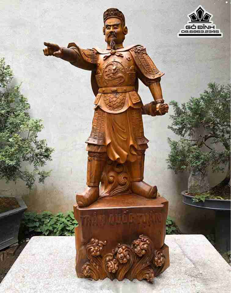 Tượng Trần Hưng Đạo Trần Quốc Tuấn Gỗ Bách Xanh Cao 145 Ngang 52 Sâu 38 (cm)