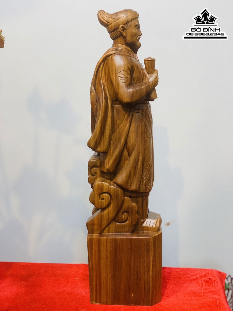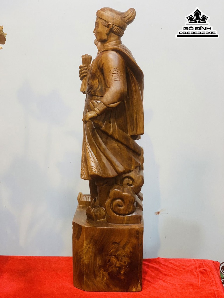 Tượng Trần Quốc Tuấn (Trần Hưng Đao) Gỗ Ngọc Am Cao 70 Ngang 22 Sâu 18 (cm)