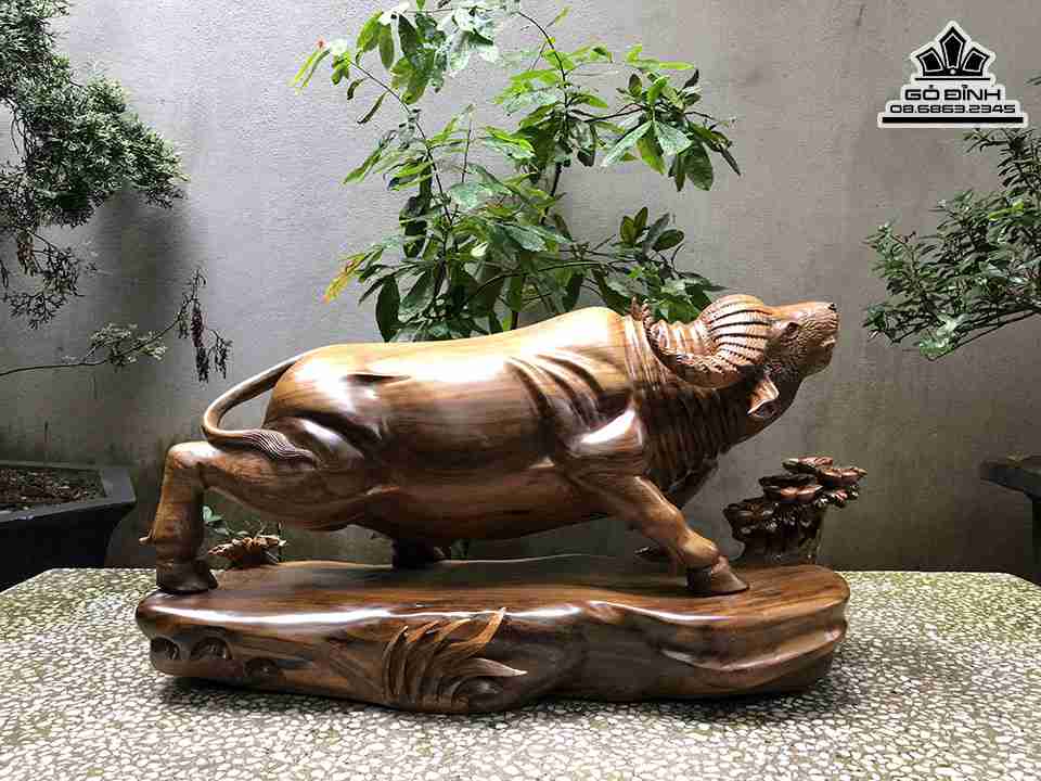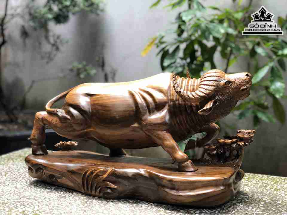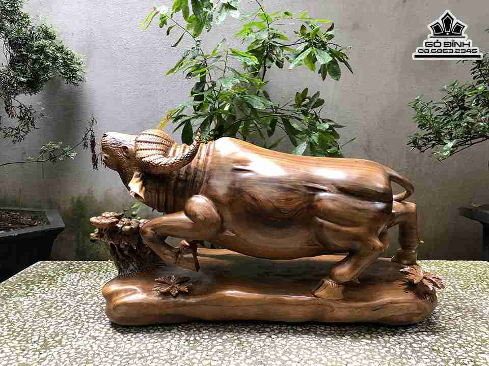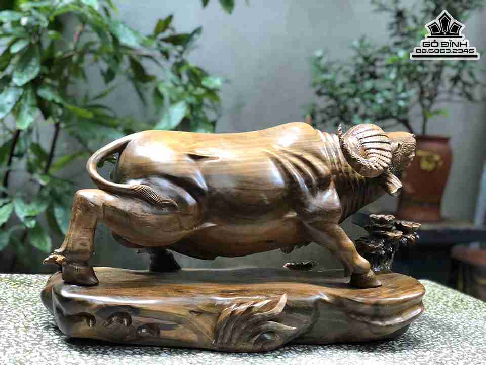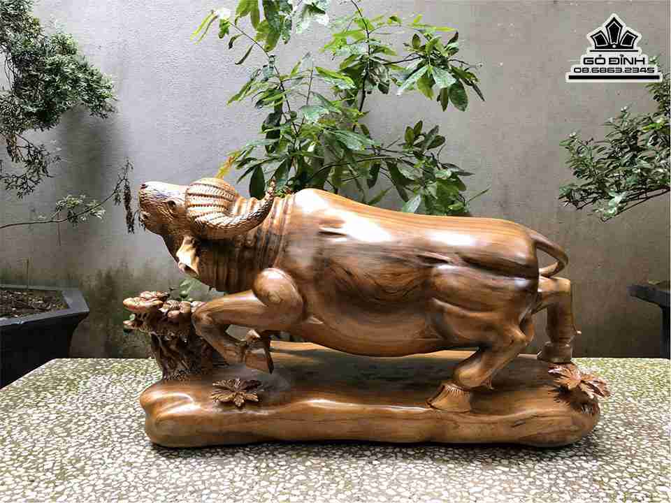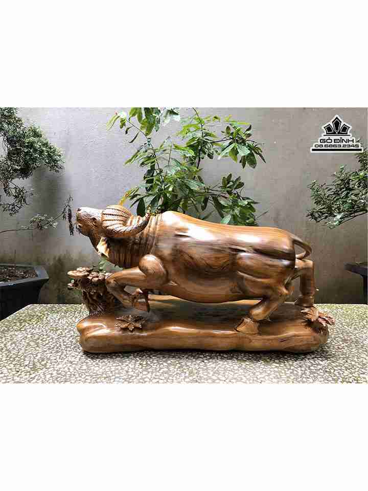 Tượng Trâu Gỗ Bách Xanh Cao 32 Ngang 65 Sâu 25 (cm)