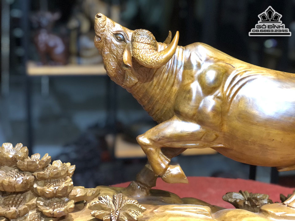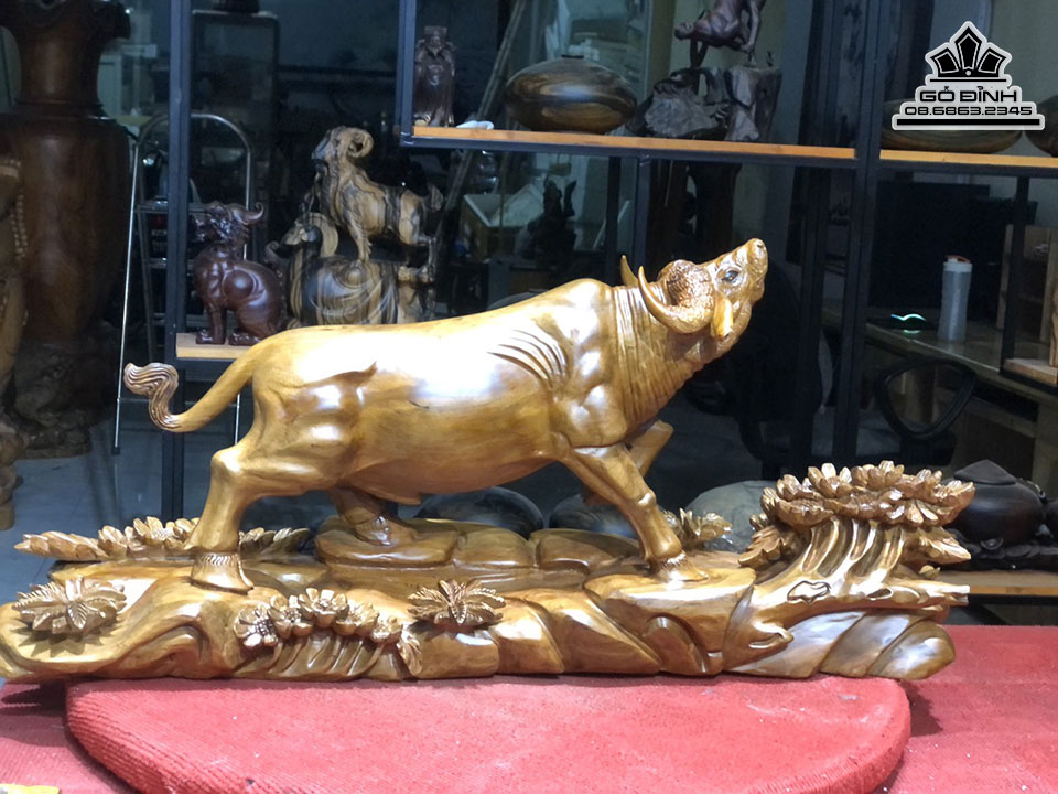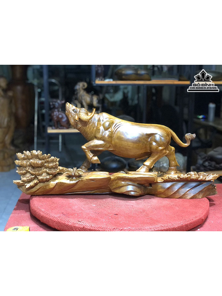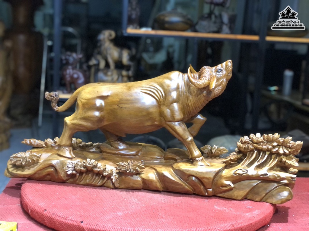 Tượng Trâu Gỗ Bách Xanh Cao 41 Ngang 90 Sâu 24 (cm)