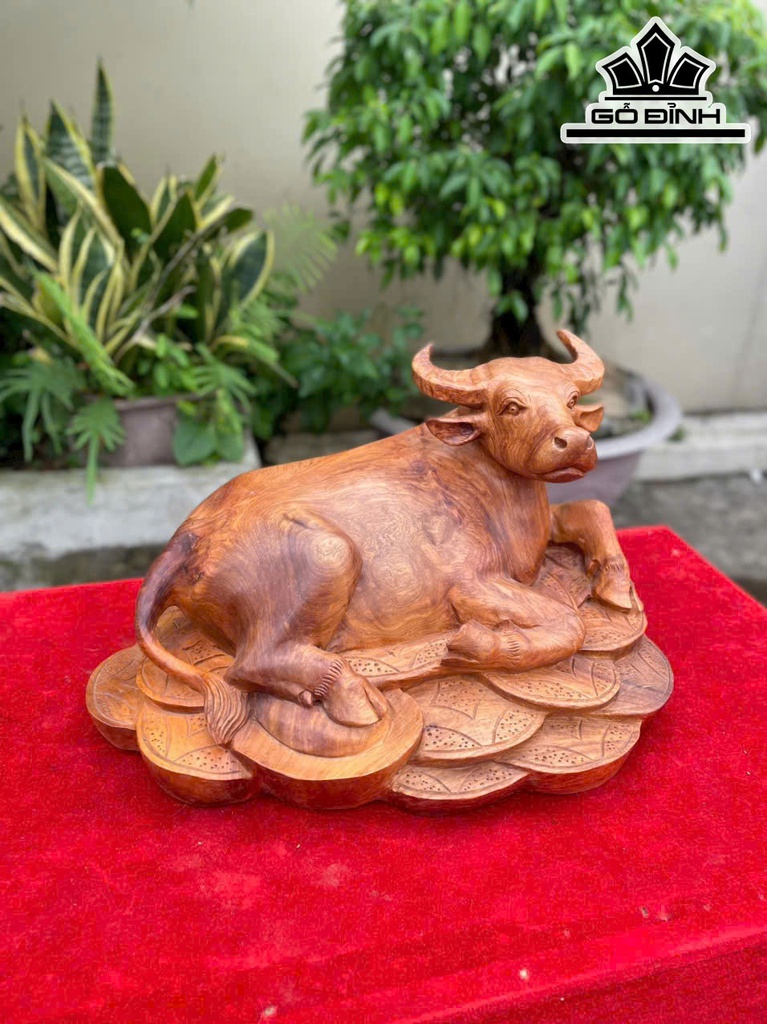 Tượng Trâu Gỗ Hương Cao 20 Ngang 35 Sâu 22 (cm)