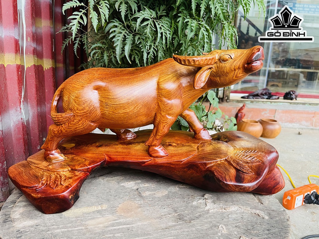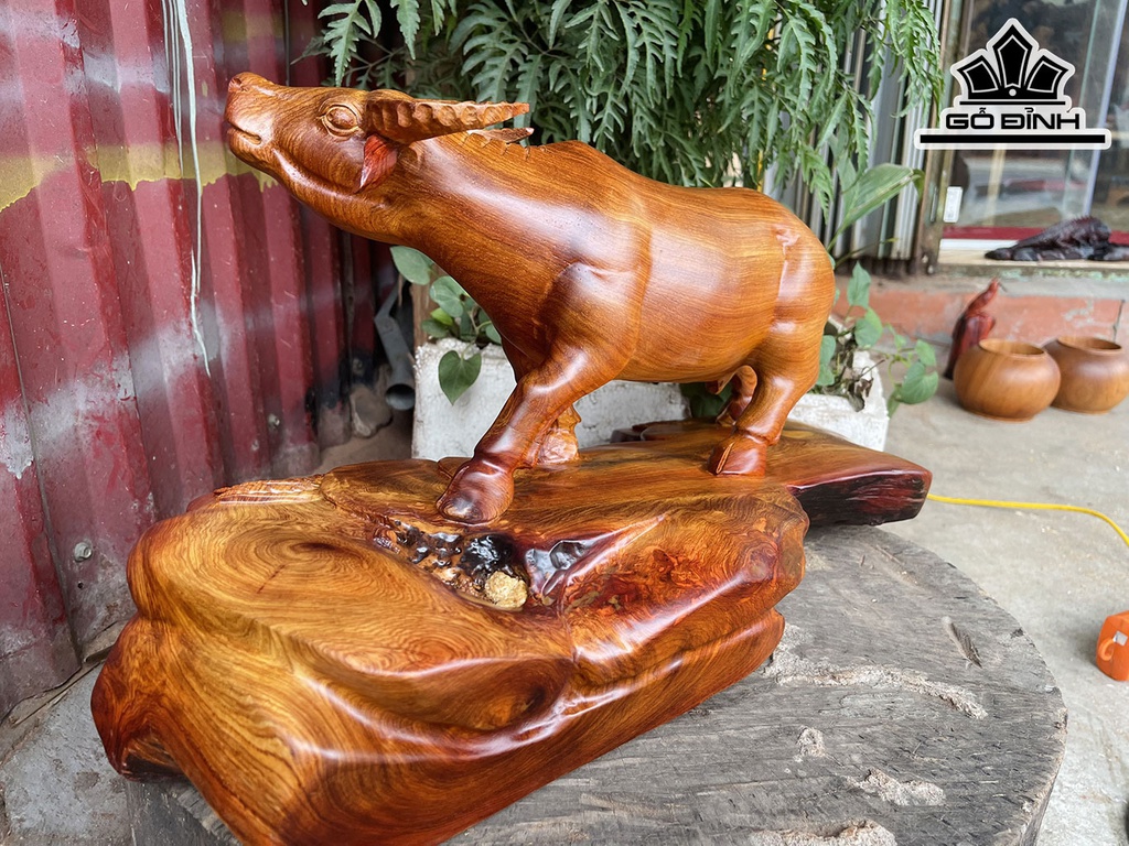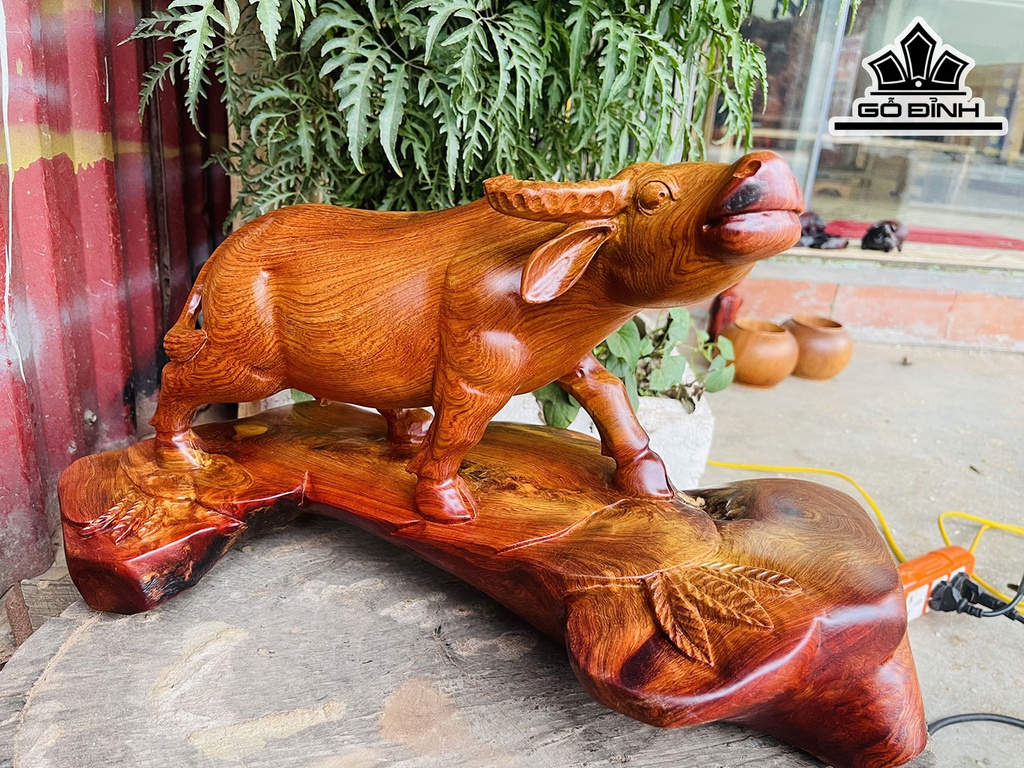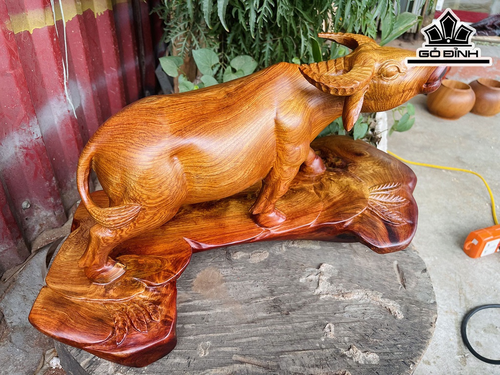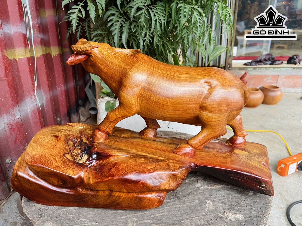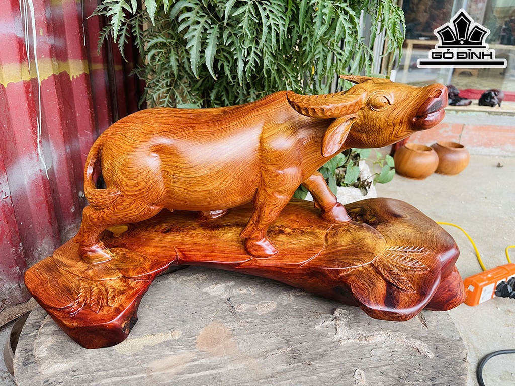 Tượng Trâu Gỗ Hương Cao 26 Ngang 50 Sâu 25 (cm)