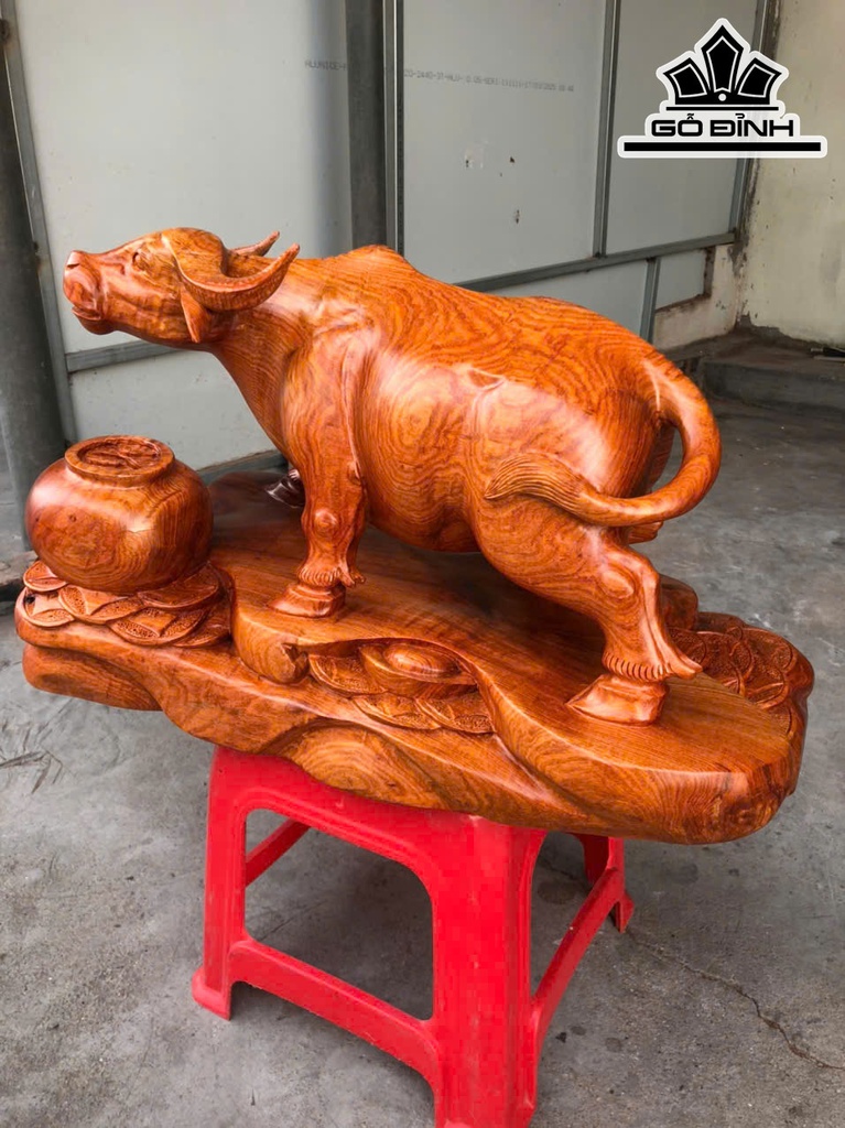 Tượng Trâu Gỗ Hương Cao 33 Ngang 54 Sâu 30 (cm)