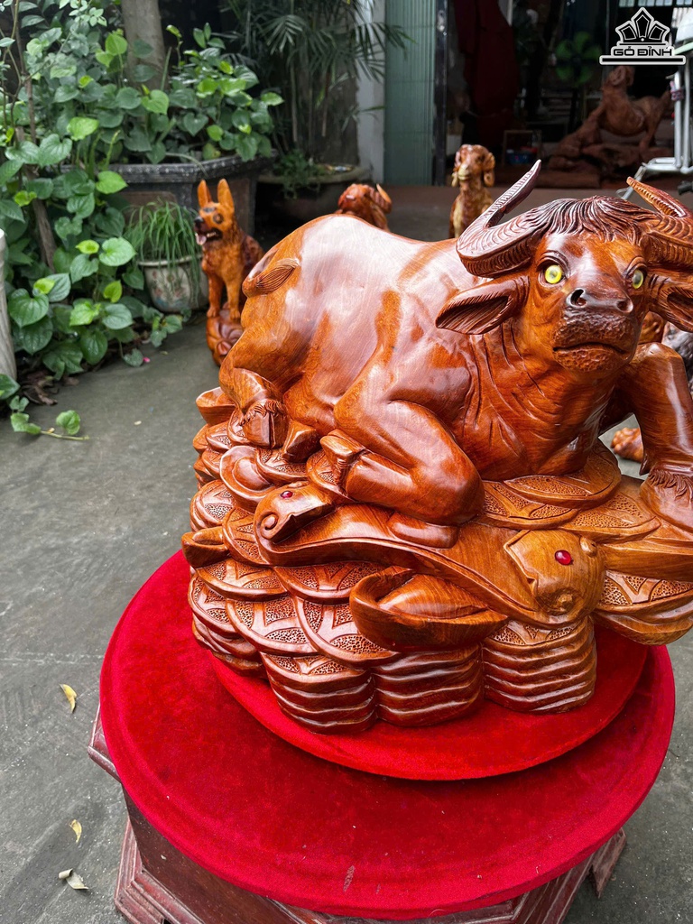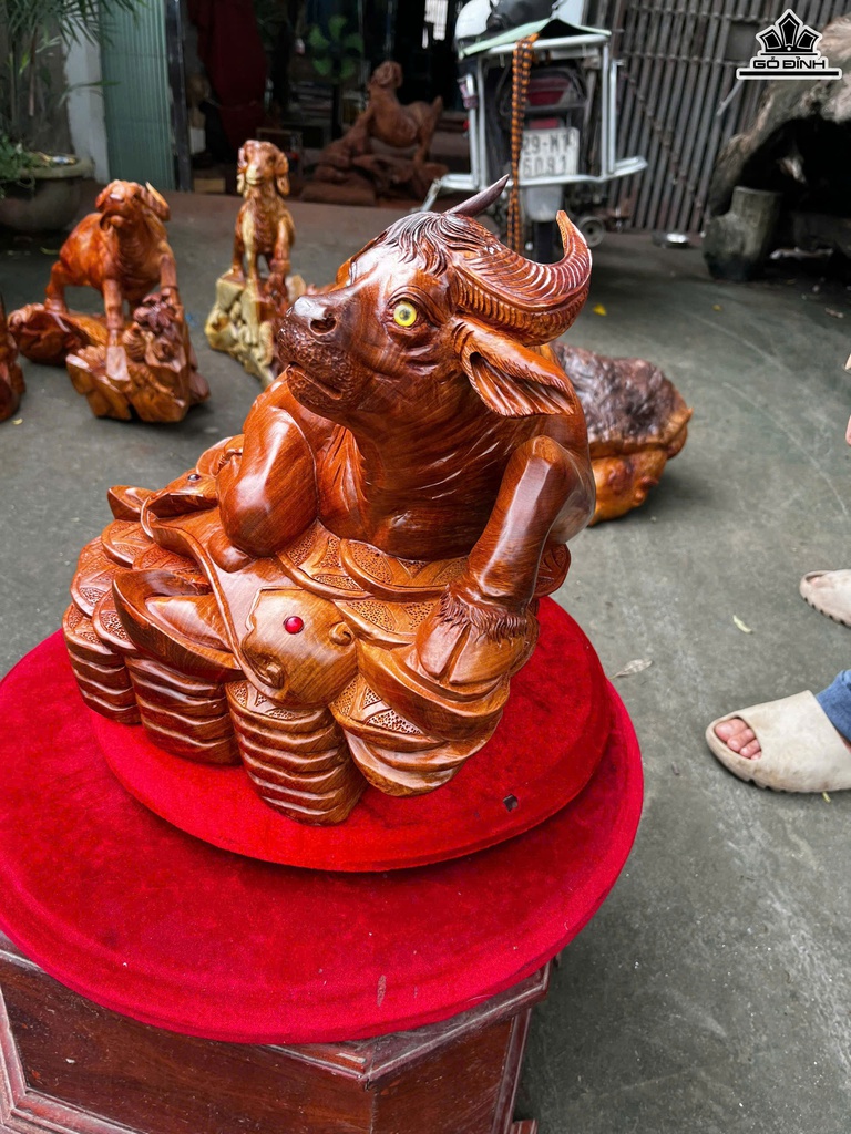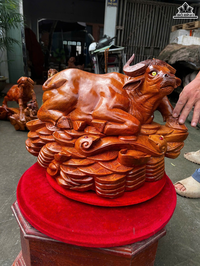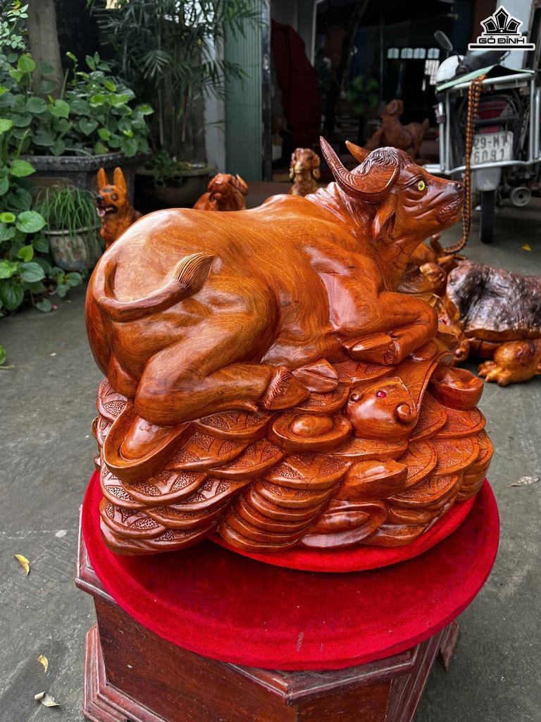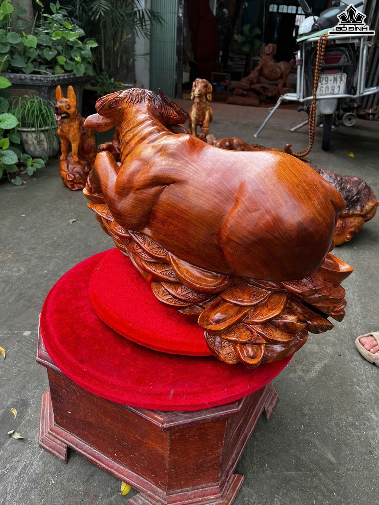 Tượng Trâu Gỗ Hương Cao 35 Ngang 55 Sâu 38 (cm)