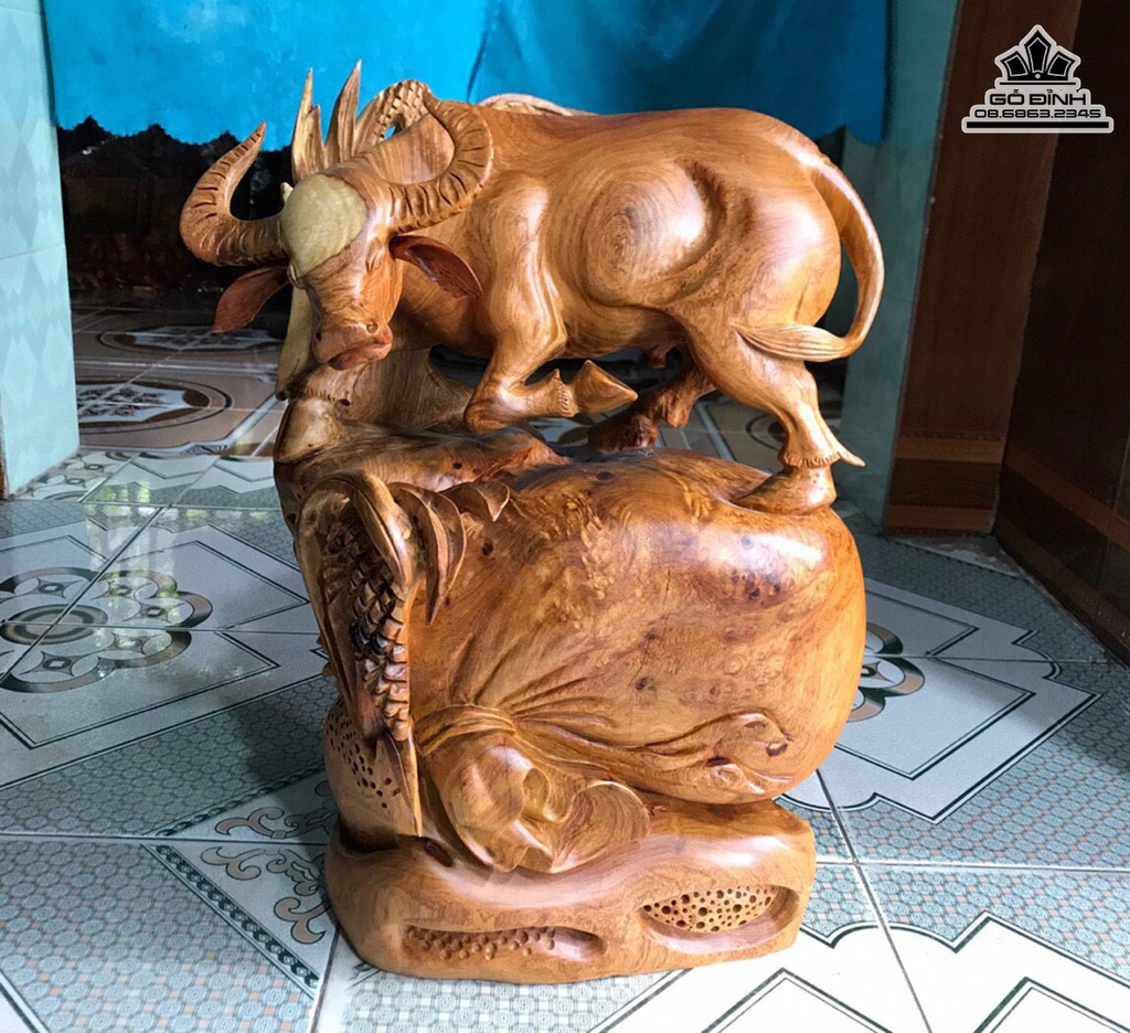 Tượng Trâu Gỗ Hương Cao 45 Ngang 33 Sâu 25 (cm)