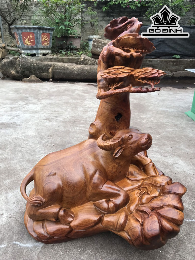 Tượng Trâu Gỗ Hương Cao 63 Ngang 50 Sâu 42 (cm)