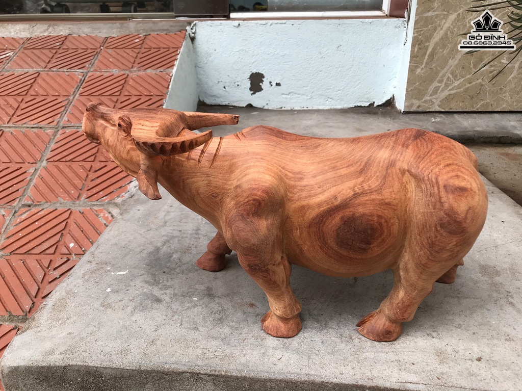Tượng Trâu Gỗ Hương Gia Lai Liền Khối Cao 19 Ngang 40 Sâu 15 (cm)