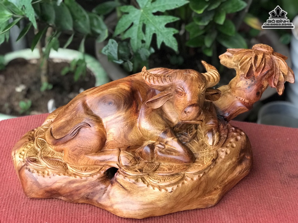 Tượng Trâu Gỗ Hượng Việt Cao 23 Ngang 45 Sâu 28 (cm)