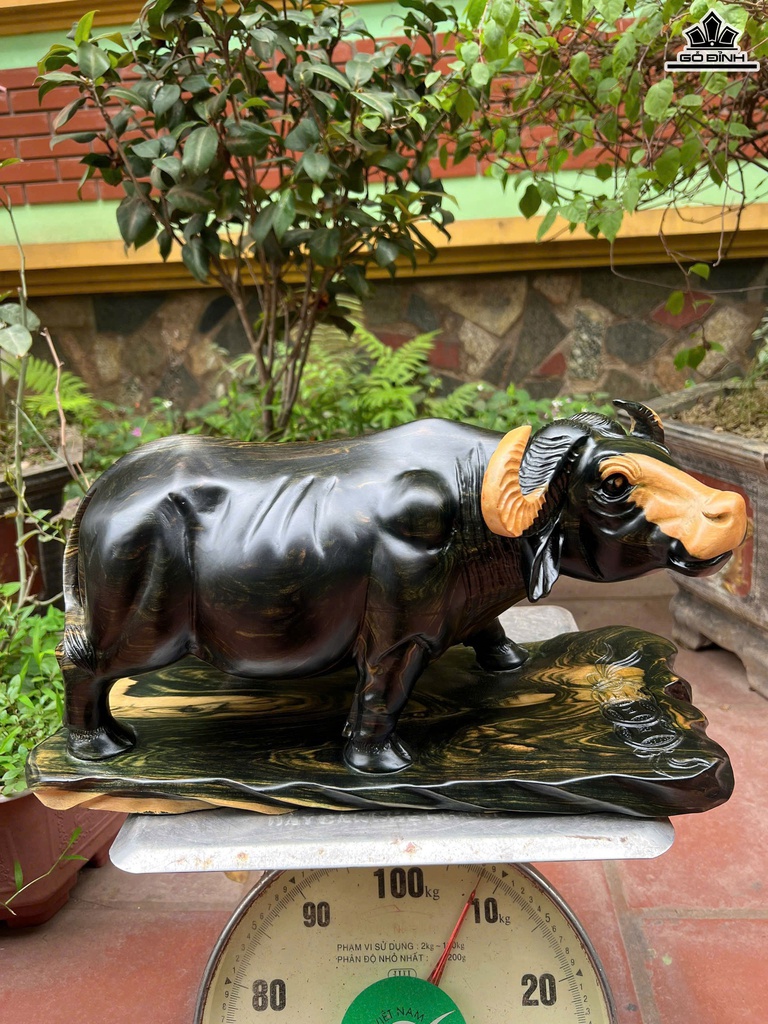 Tượng Trâu Gỗ Mun Hoa Cao 23 Ngang 45 Sâu 19 (cm)