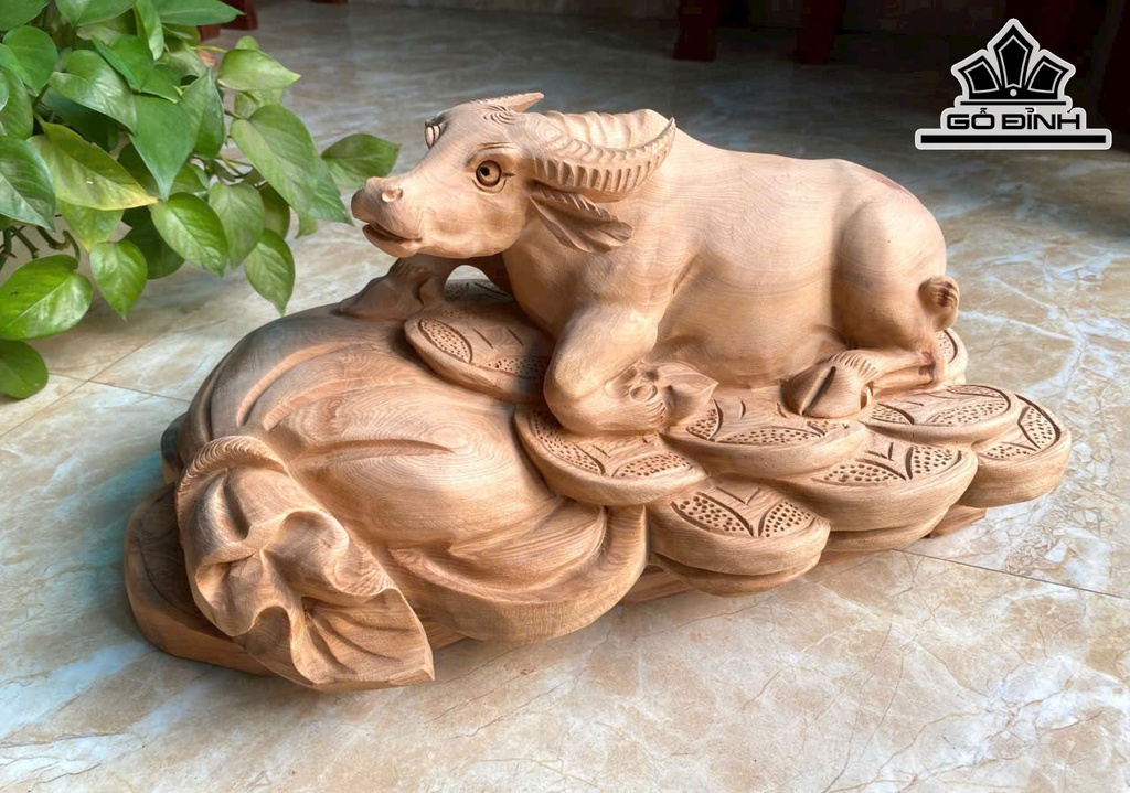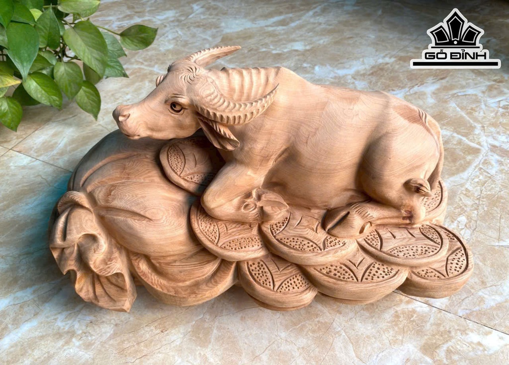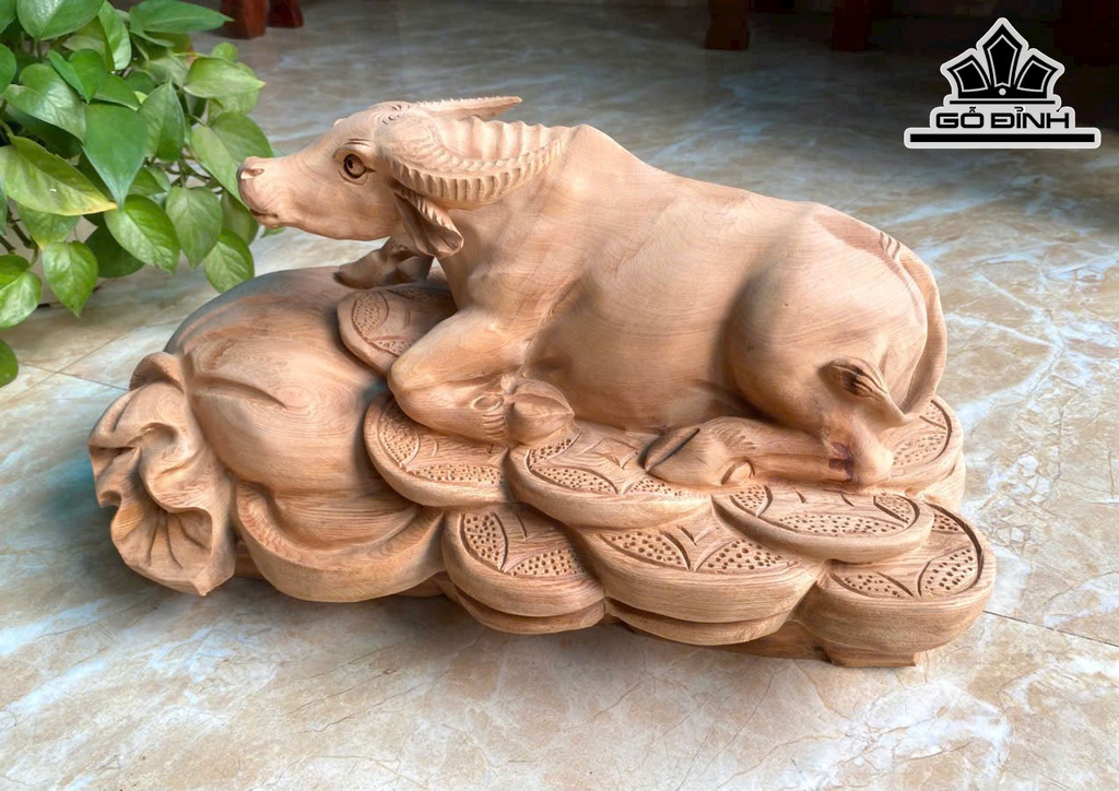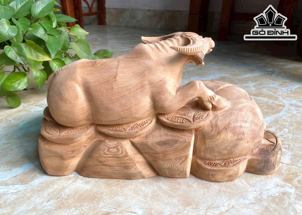 Tượng Trâu Gỗ Ngọc Am Cao 22 Ngang 46 Sâu 26 (cm)