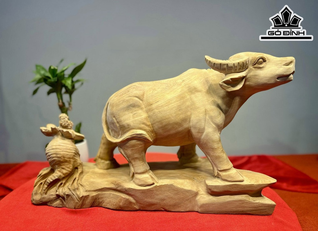 Tượng Trâu Gỗ Ngọc Am Cao 33 Ngang 55 Sâu 20 (cm)