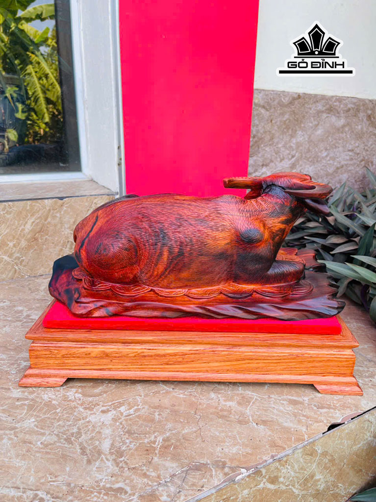 Tượng Trâu Gỗ Trắc Cao 18 Ngang 42 Sâu 21 (cm) 7kg - Cả Kỷ Cao 26