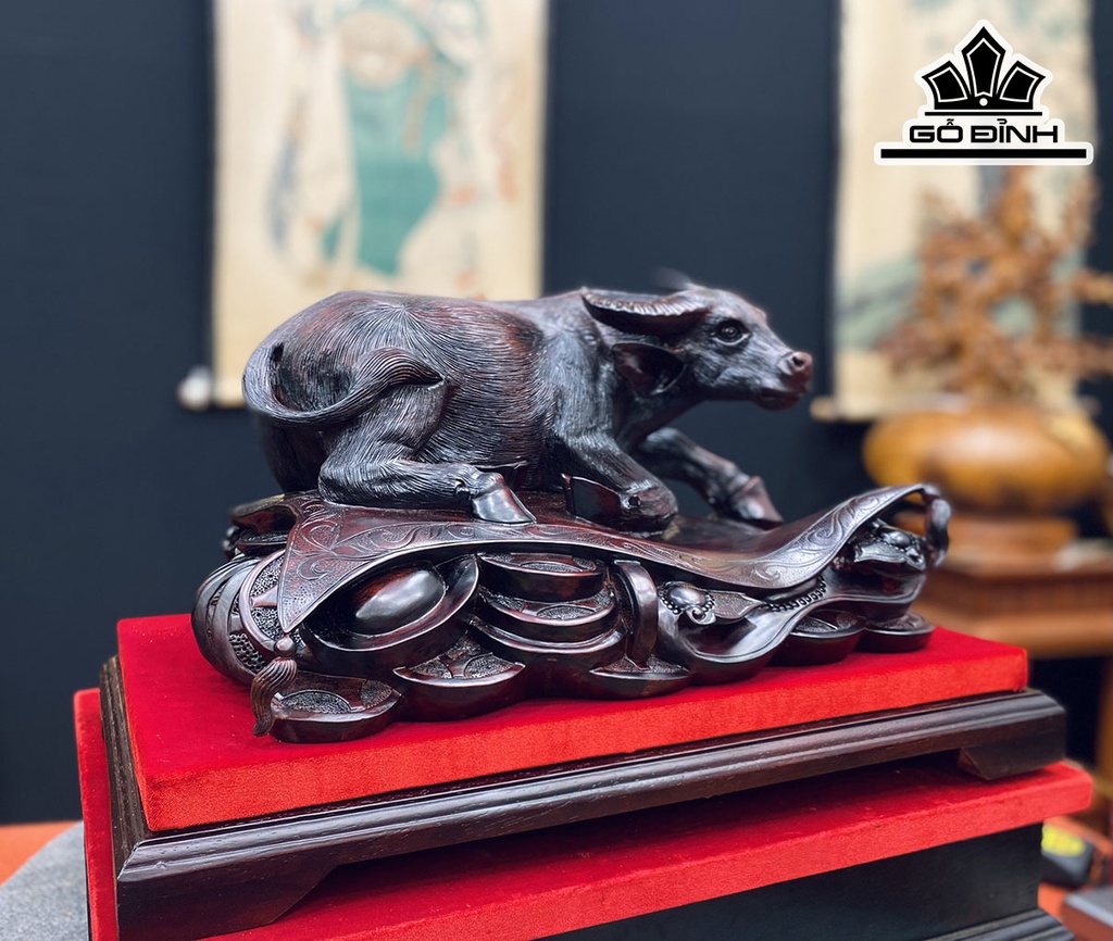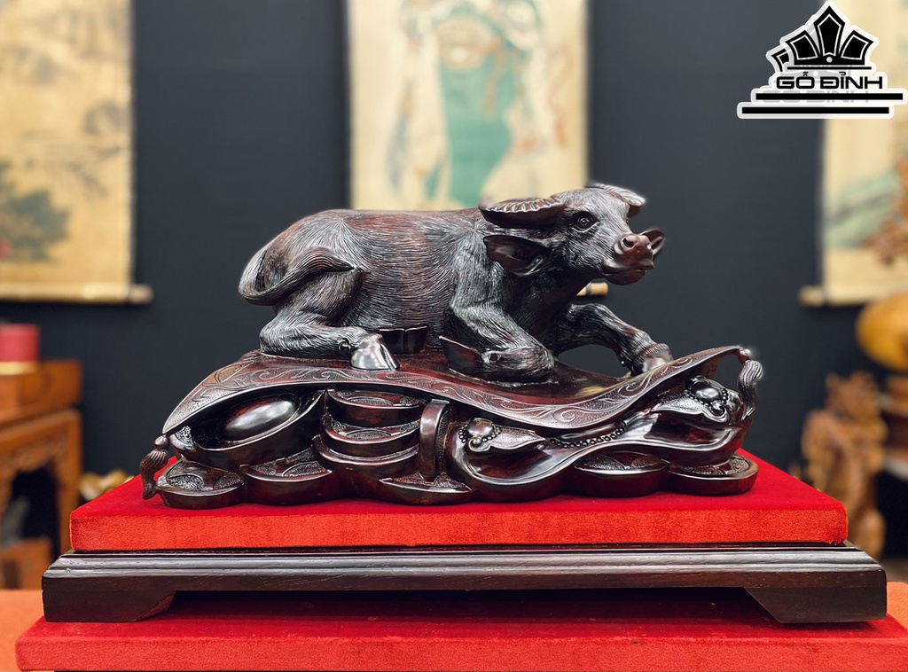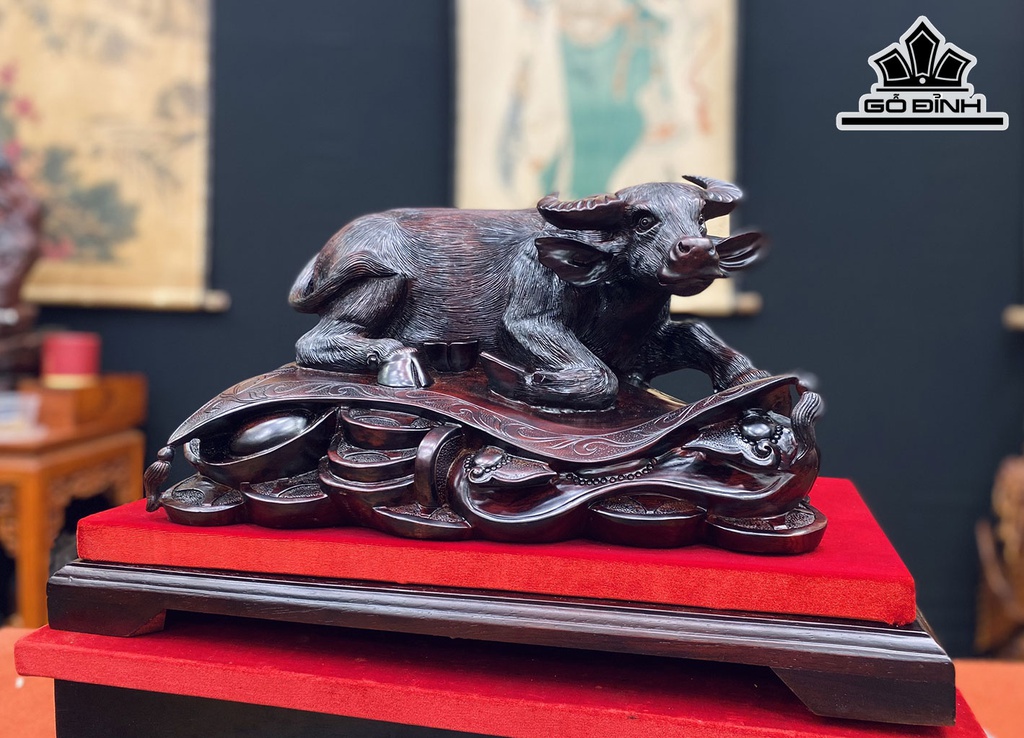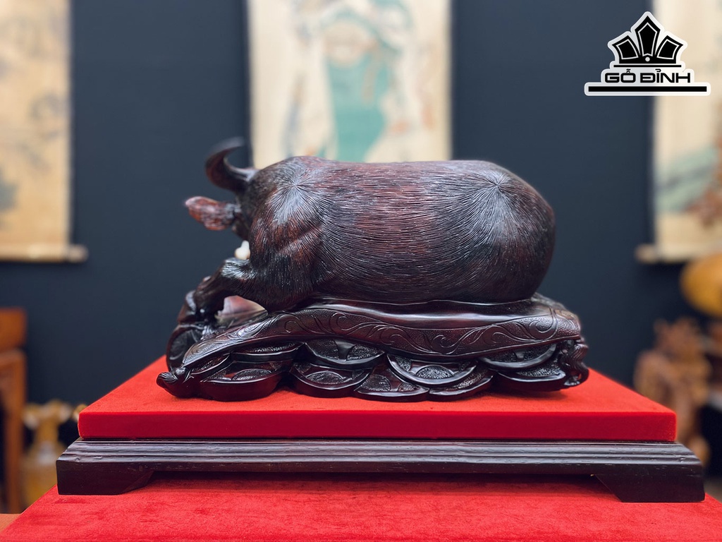 Tượng Trâu Gỗ Trắc Cao 28 Ngang 38 Sâu 25 (cm)