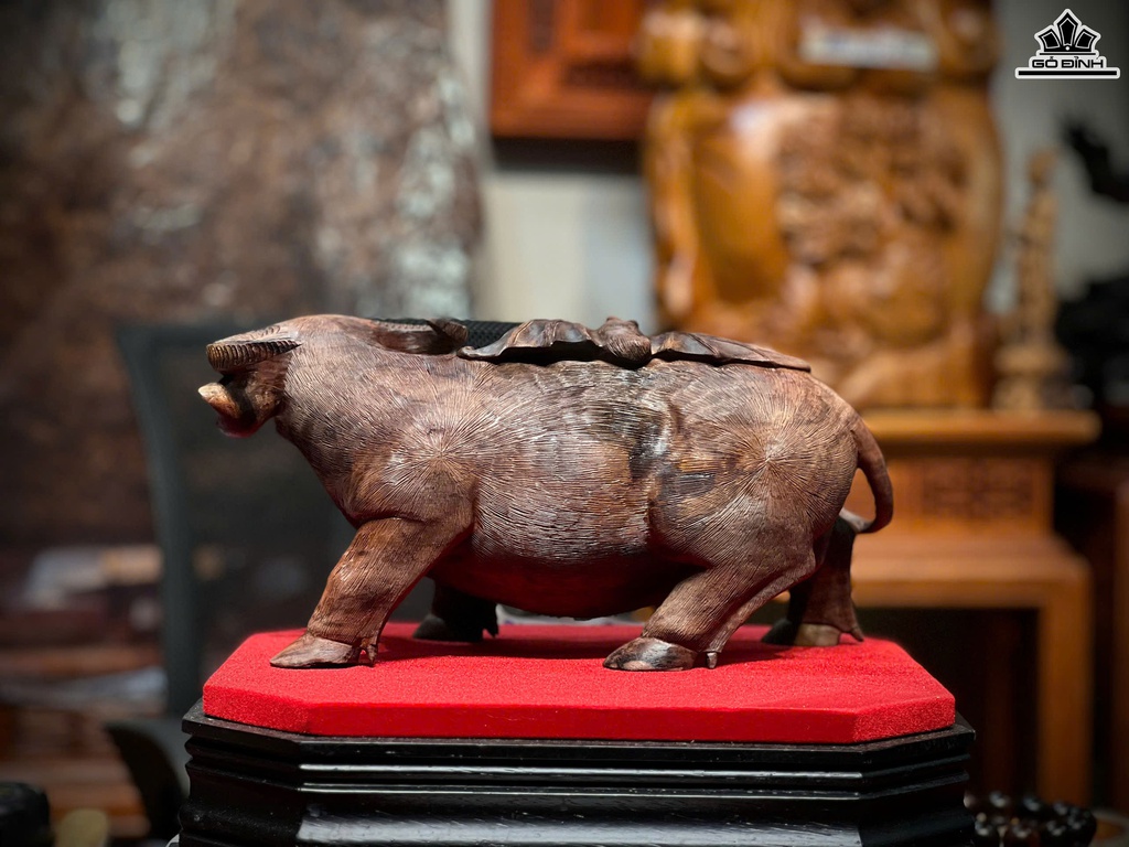 Tượng Trâu Gỗ Trắc Cao 48 Ngang 65 Sâu 45 (cm)