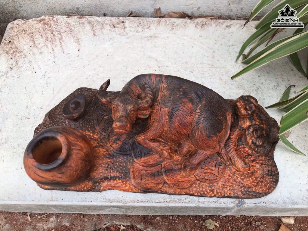 Tượng Trâu Gỗ Trắc Cao 7 Ngang 30 Sâu 13 (cm)