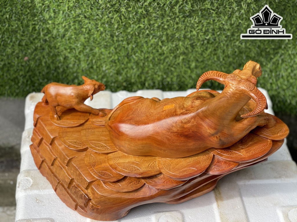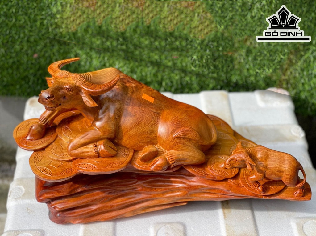 Tượng Trâu Mẫu Tử Gỗ Hương Cao 27 Ngang 50 Sâu 22 (cm)