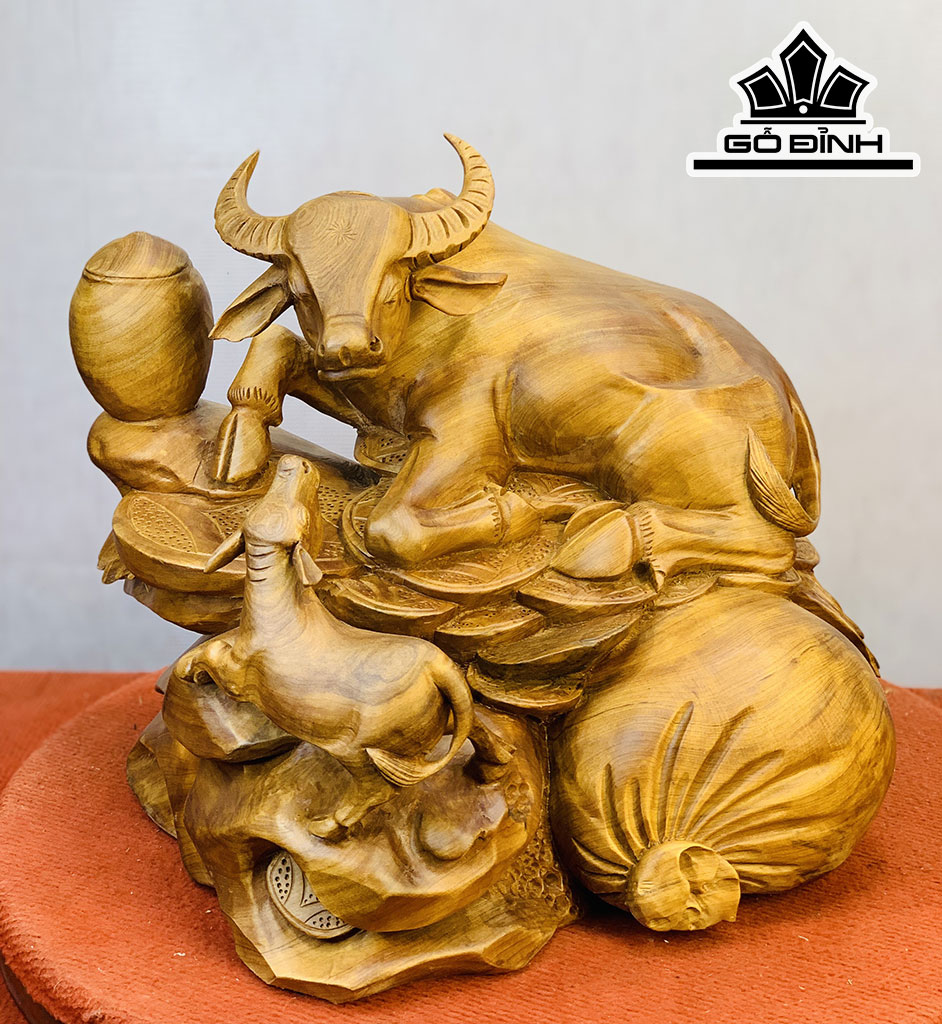 Tượng Trâu Mẫu Tử Ngồi Bao Tiền Gỗ Ngọc Am Cao 40 Ngang 42 Sáu 40 (cm)