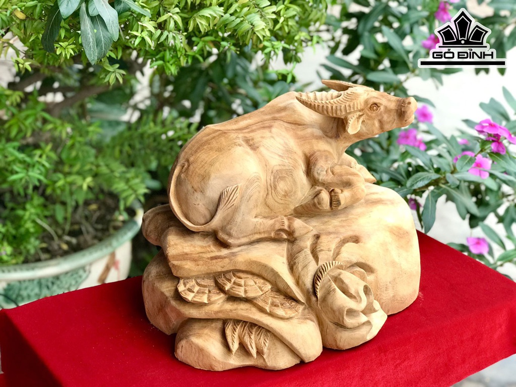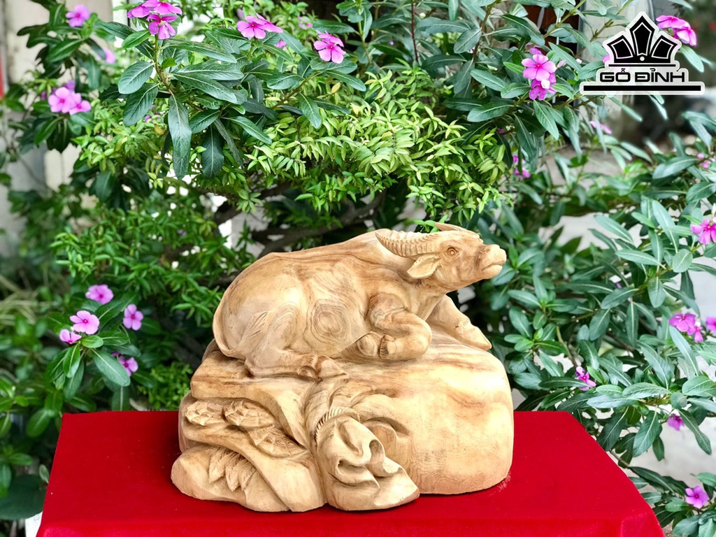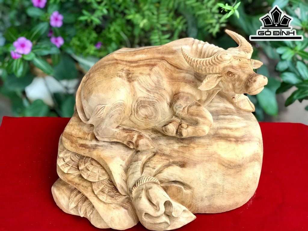 Tượng Trâu Nằm Bao Tiền Gỗ Ngọc Am Cao 27 Ngang 38 Sâu 29 (cm)