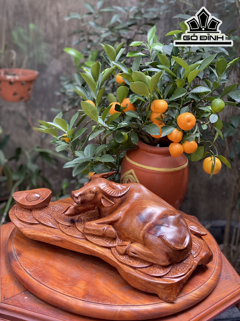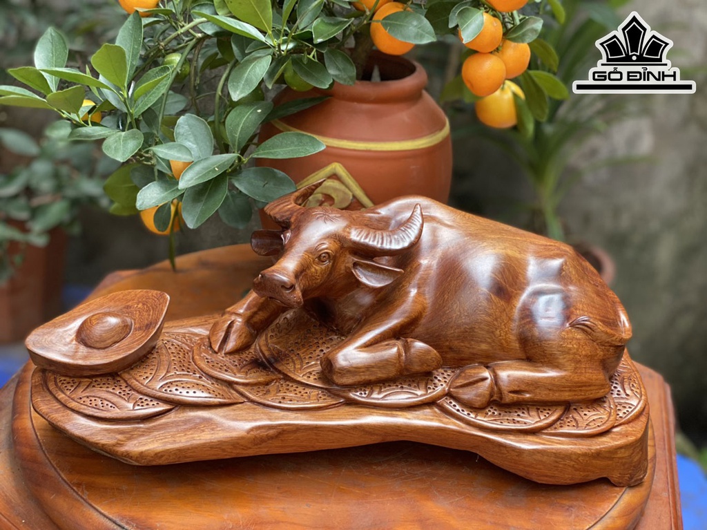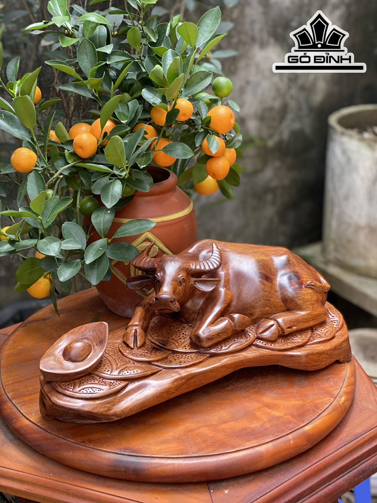 Tượng Trâu Nằm Gỗ Hương Cao 16 Ngang 46 Sâu 22 (cm)