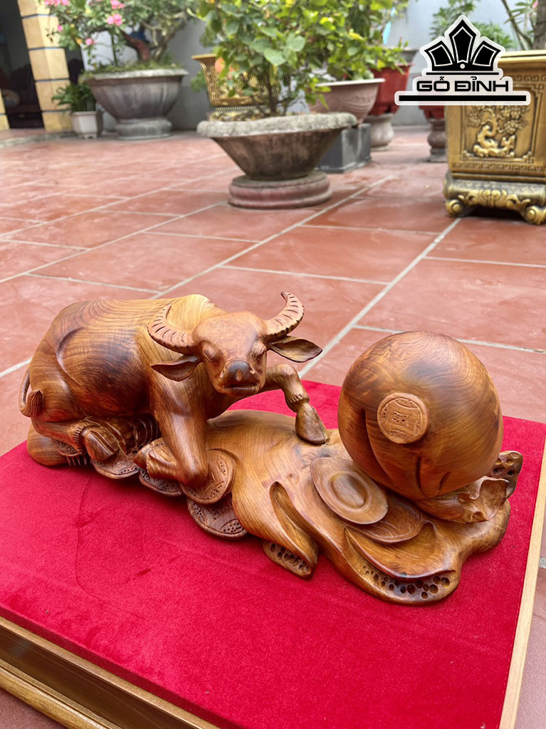 Tượng Trâu Nằm Gỗ Hương Cao 18 Ngang 48 Sâu 14 (cm)