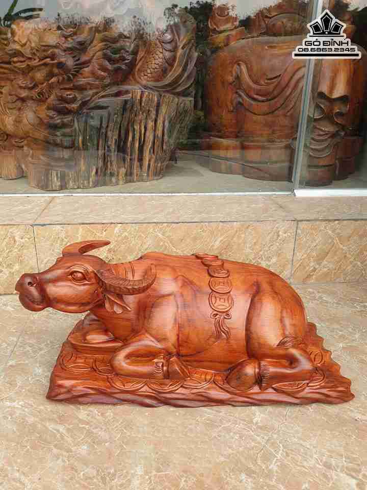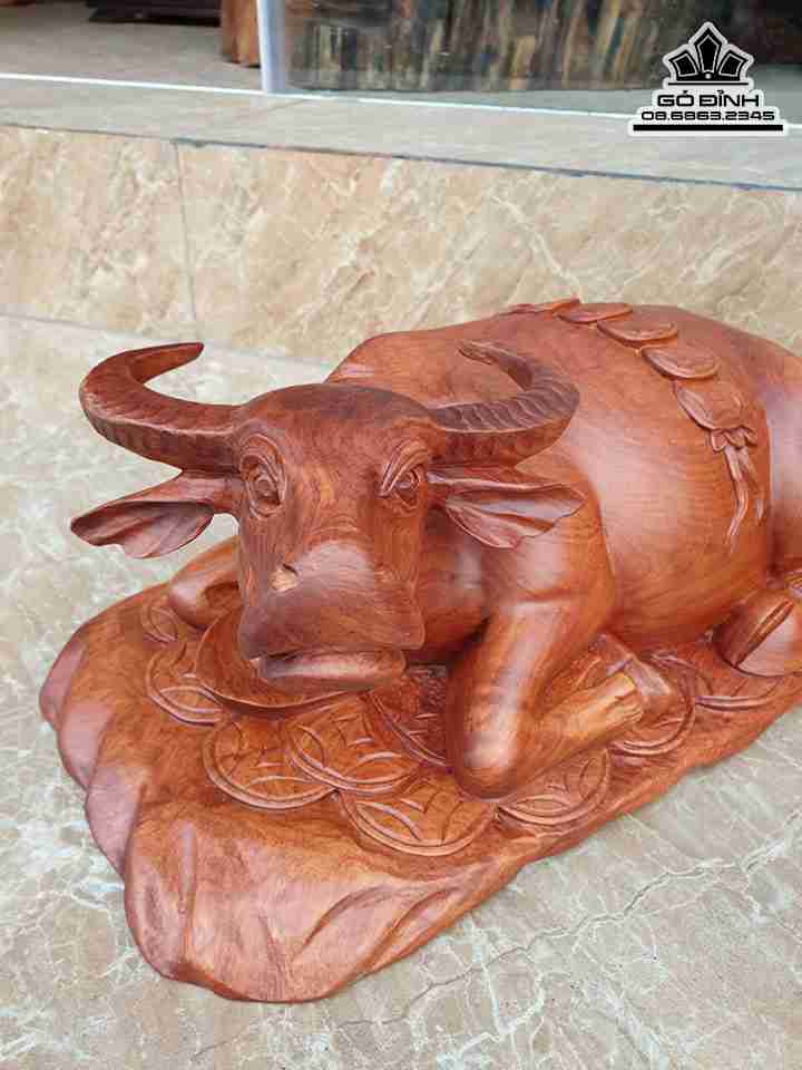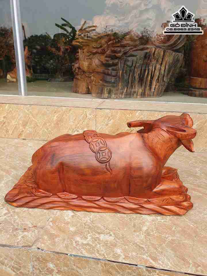 Tượng Trâu Nằm Tiền Gỗ Hương Cao 22 Ngang 48 Sâu 22 (cm)
