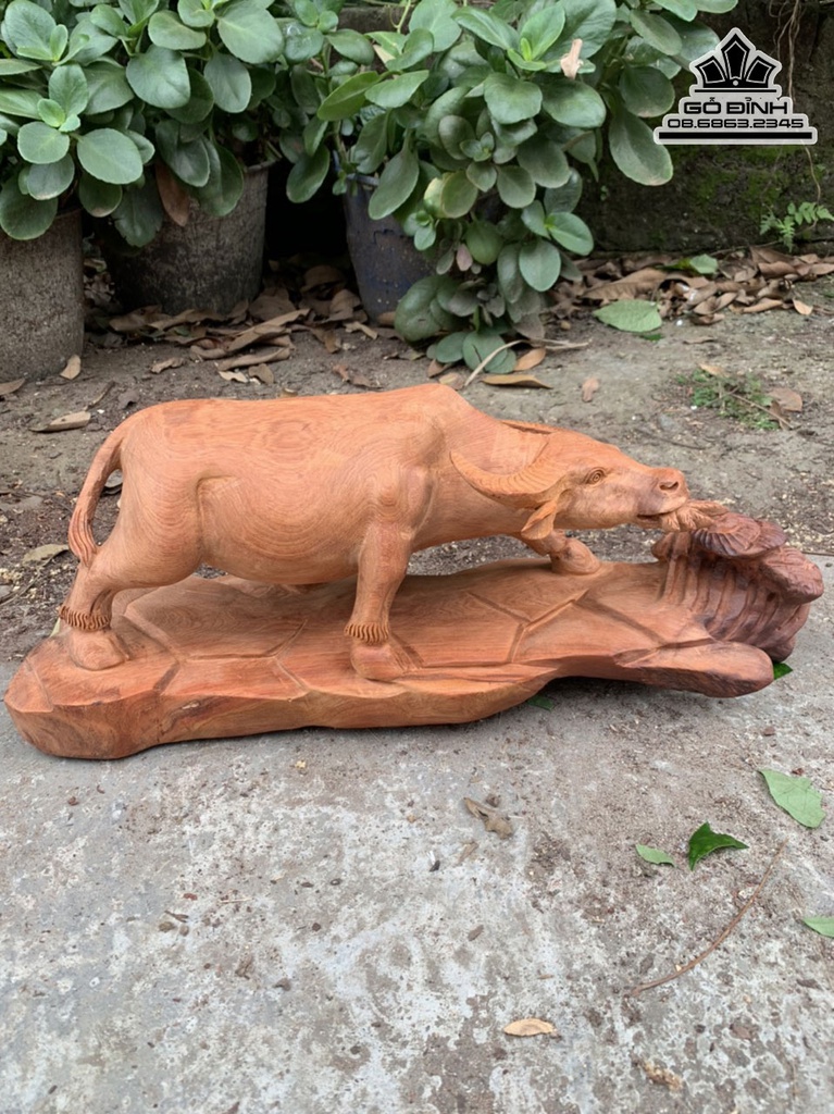Tượng Trâu Phong Thủy Gỗ Hương Việt Cao 18 Ngang 46 Sâu 15 (cm)